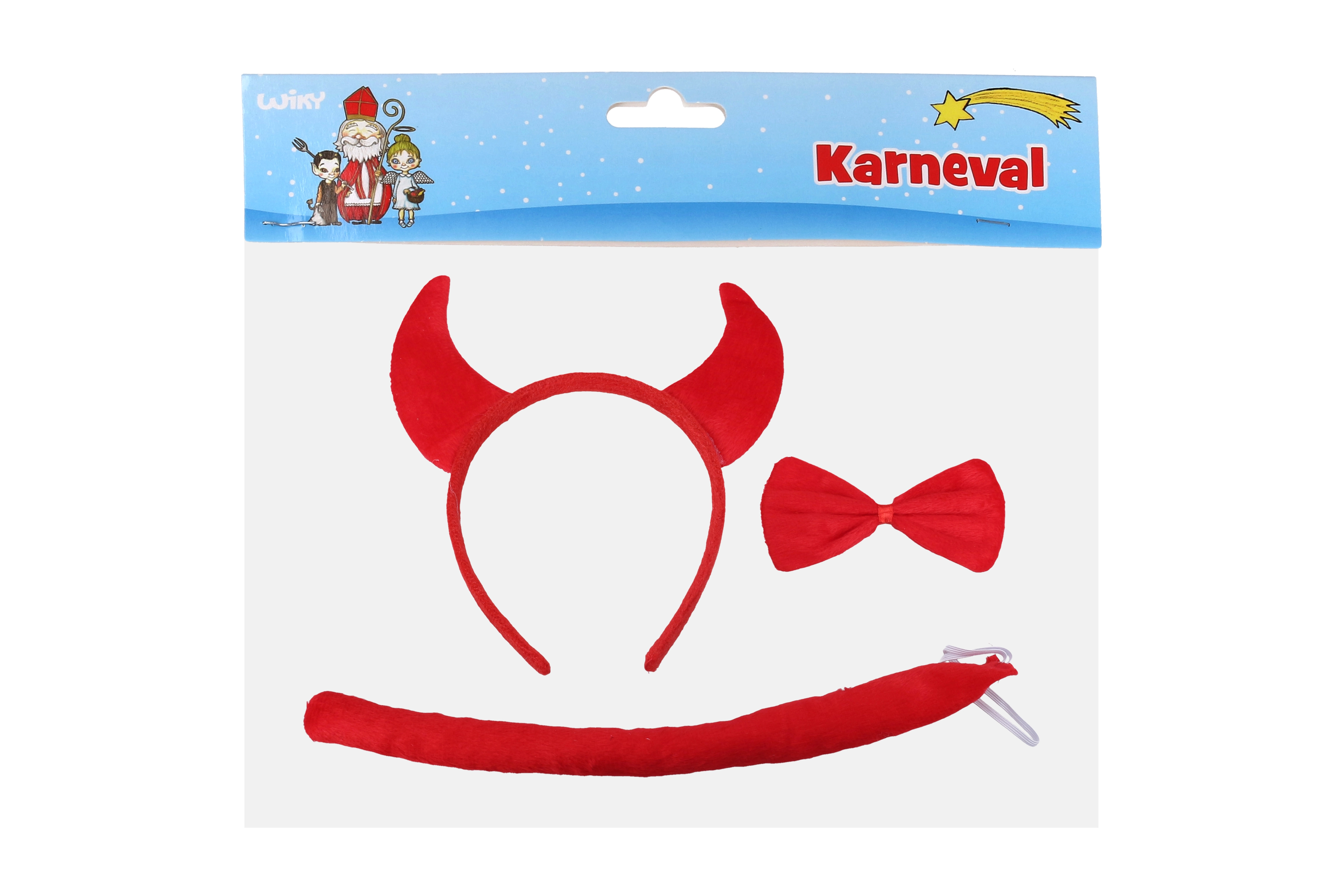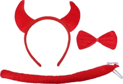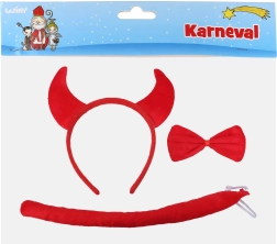 Šis velnio aksesuarų rinkinys apima lankelį su rageliais, varlytę ir uodegą – puikiai tinka jūsų kostiumams per Užgavėnes, šventes ir vakarėlius.