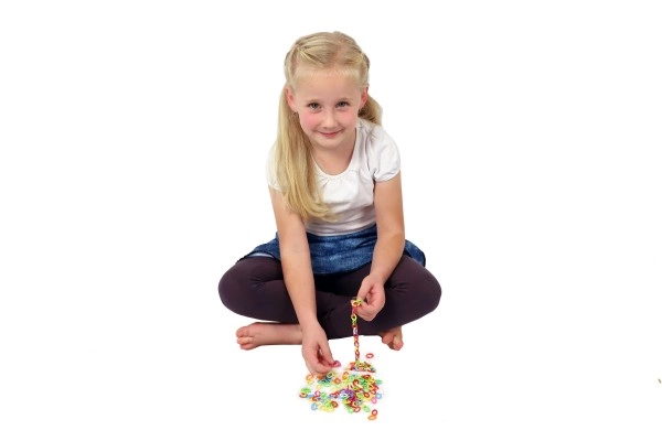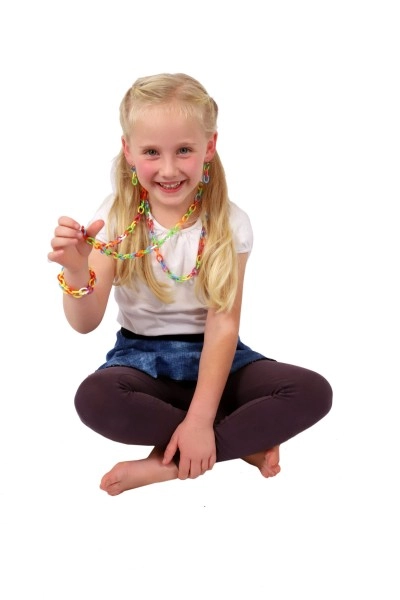 Pakanka spalvotų jungčių grandinėlėms, apyrankėms ir dekoracijoms kurti. Vaikai lavins vaizduotę ir smulkiąją motoriką kiekvieno susegimo metu.