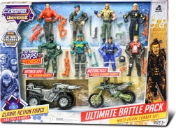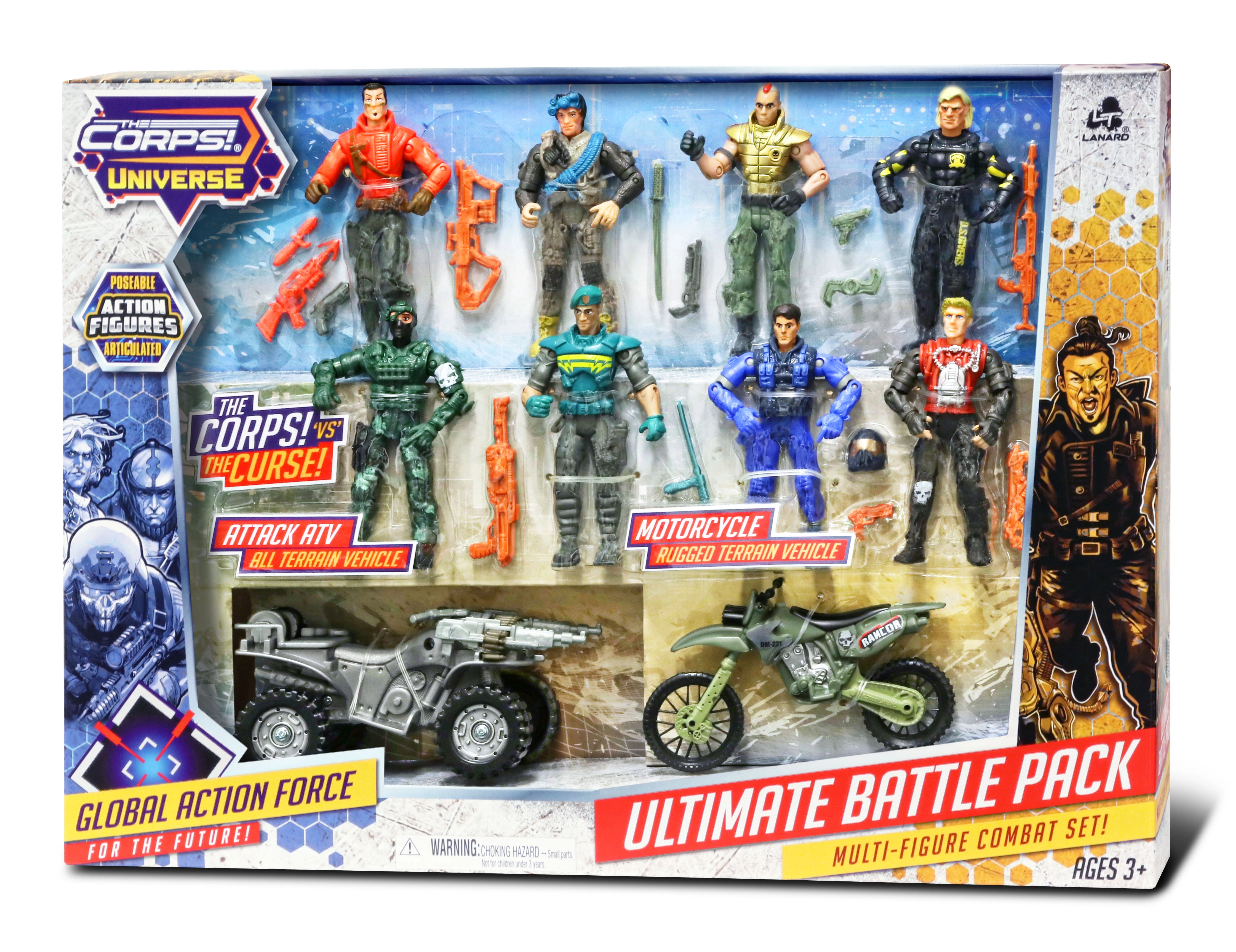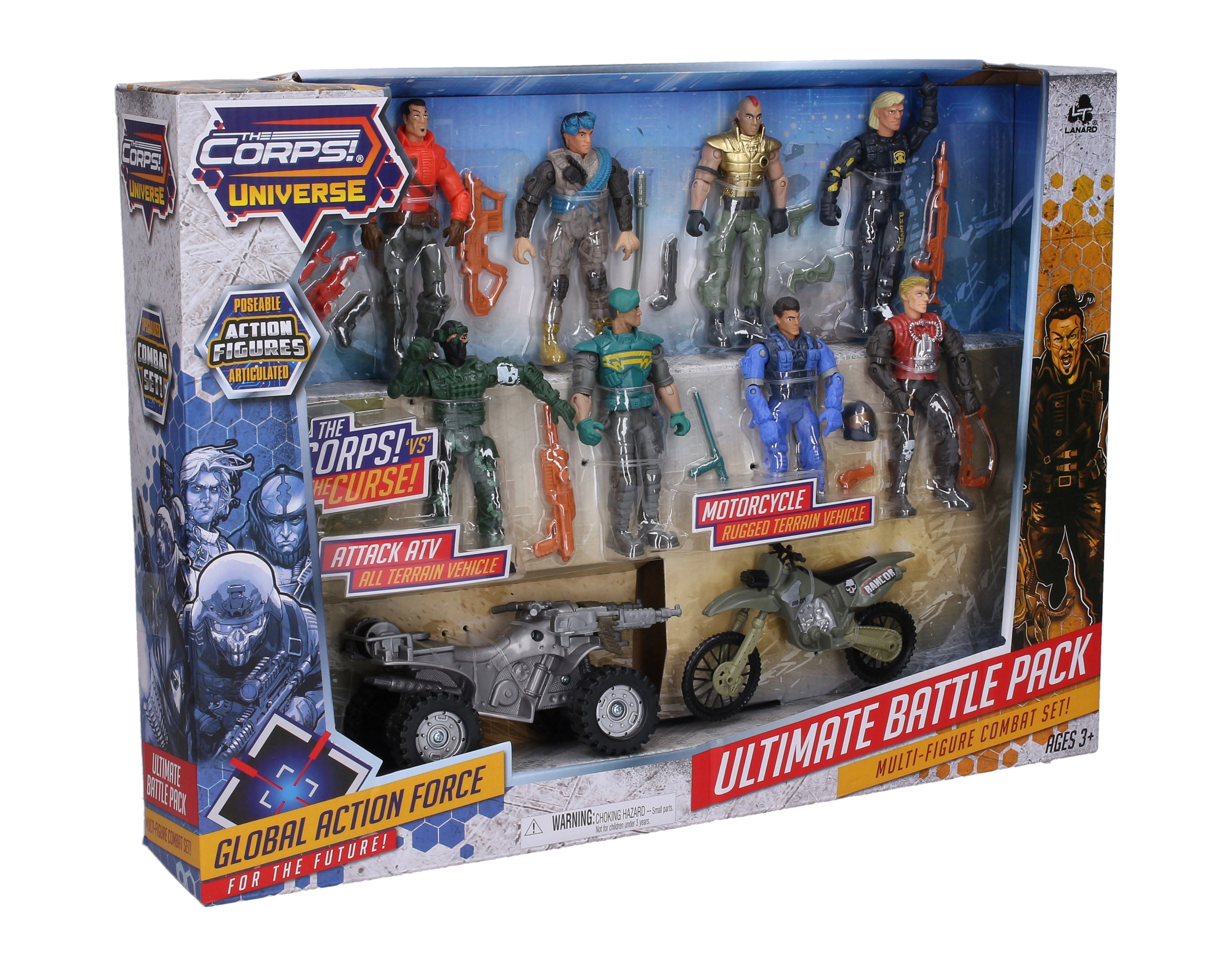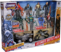 Veiksmo rinkinys mažiesiems nuotykių ieškotojams: The Corps pristato 8 detaliai ištobulintų 11 cm aukščio karių rinkinį su transporto priemonėmis dinamiškoms misijoms. Komplekte yra 13 cm motociklas ir 14 cm keturratis, kurie užtikrina įtemptą žaidimą ir ilgų valandų pramogą.