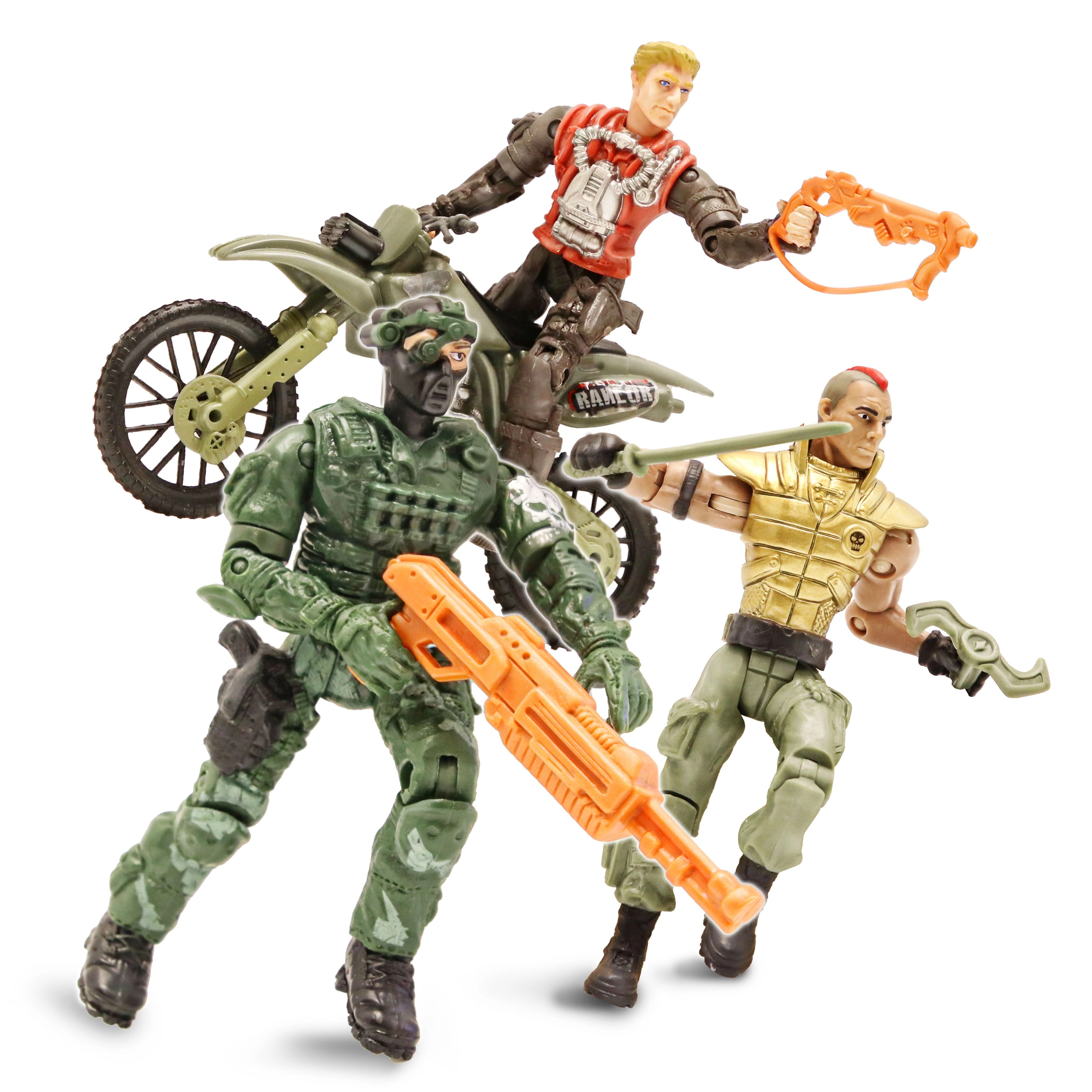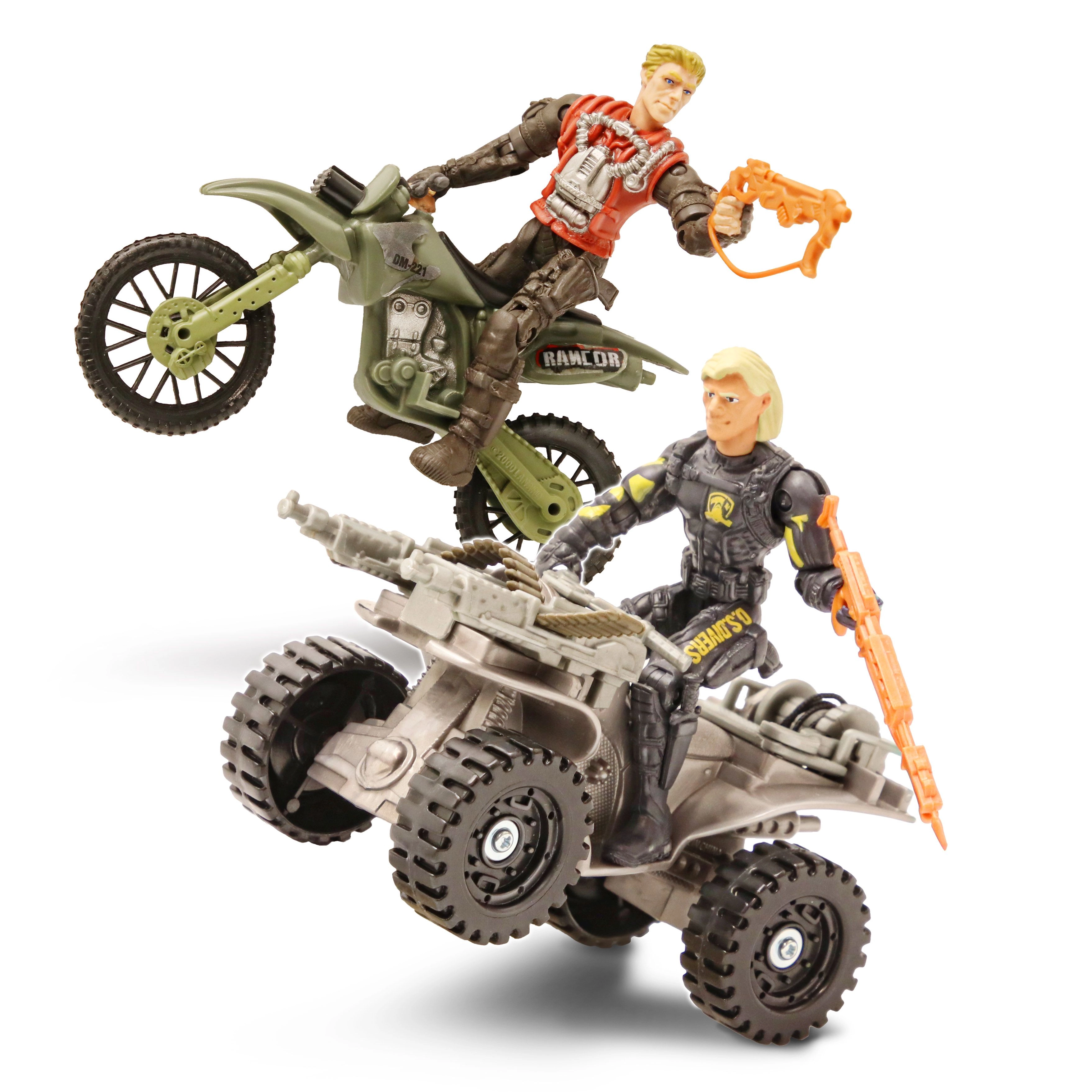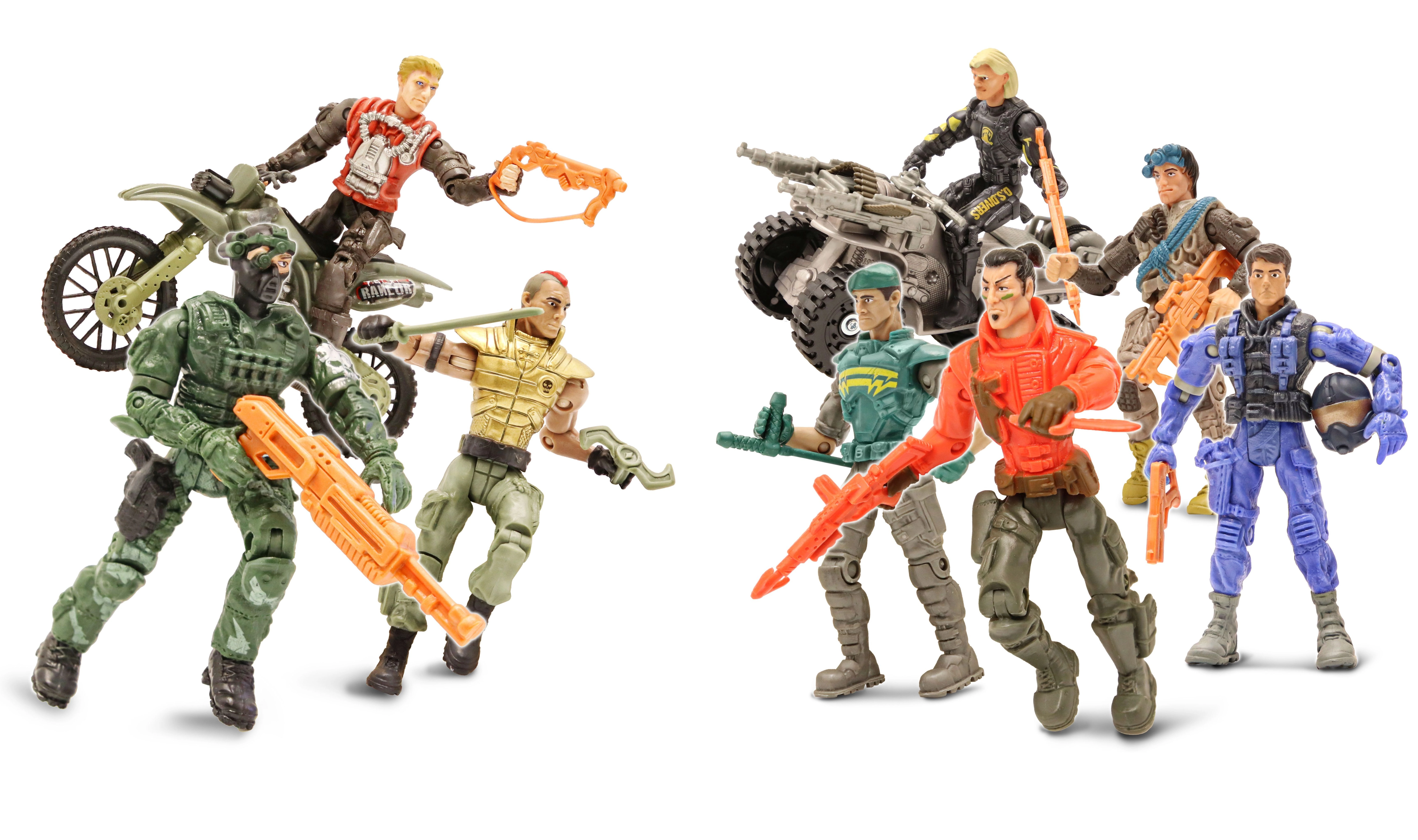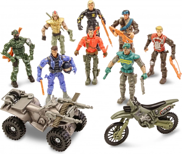 - 8 karių figūrėlės, motociklas, keturratis