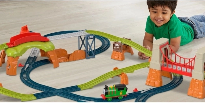 Šis Fisher-Price bėgių rinkinys leidžia mažiesiems geležinkelininkams statyti įvairias trasas ir kurti kūrybiškus išdėstymus. Rinkinyje esantis varomas lokomotyvas Petras gali važiuoti bėgiais į kalną ir nuo kalno, dar labiau didindamas žaidimo patrauklumą ir trukmę.