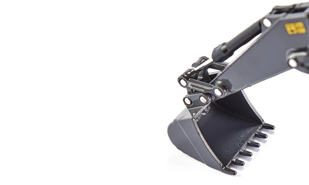 Šarnyrinė konstrukcija leidžia realistiškai kasti, krauti ir versti, todėl modelis įtikinamai imituoja tikro vikšrinio ekskavatoriaus darbą.