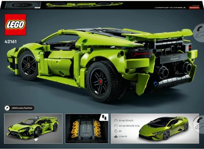 Šis realistiškas klasikinės žalios spalvos modelis tiksliai perteikia agresyvias LAMBORGHINI Huracán Tecnica linijas ir technologijas. Apgalvotos funkcijos leidžia vaikams ir suaugusiesiems mėgautis tiek pačiu konstravimu, tiek vėlesniu mechanikos pažinimu – nuo judančio dešimties cilindrų variklio iki veikiančio priekinių ratų vairavimo ir atidaromų skydų bei durų.