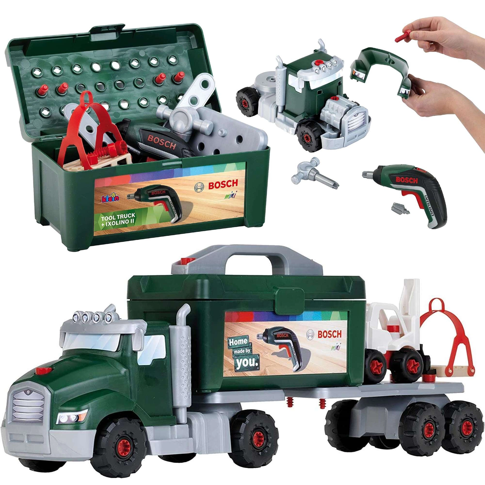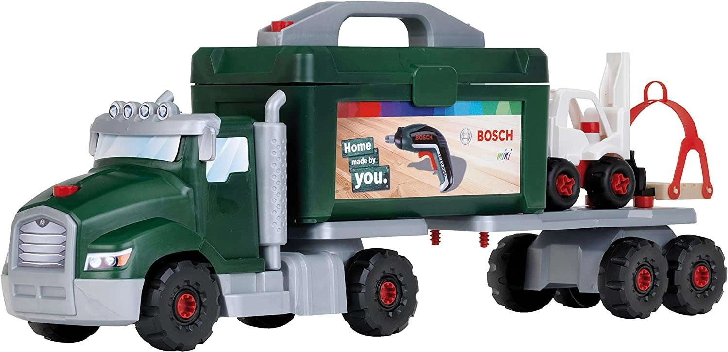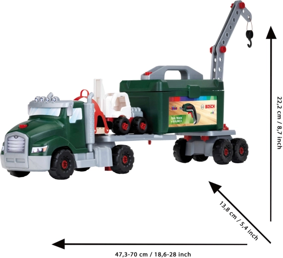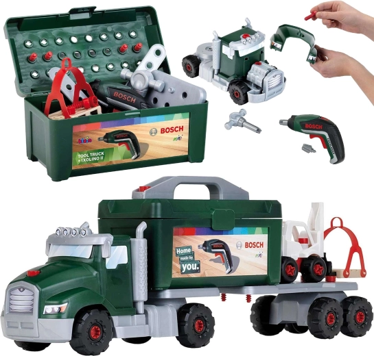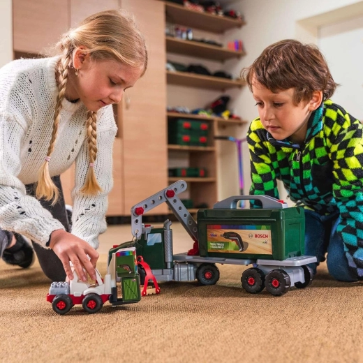 Vaikiškas konstravimo rinkinys sukamas BOSCH sunkvežimis iš Klein siūlo beveik begalines žaidimo galimybes. Pakuotėje rasite 86 dalių, įskaitant nuimamą įrankių dėžę, priekabą, kraną, gręžtuvą ir mažą šakinį krautuvą. Vaikai lavins miklumą, logiką ir vaizduotę, o dėl tvirto atlikimo rinkinys tarnaus ilgus pramogų metus.