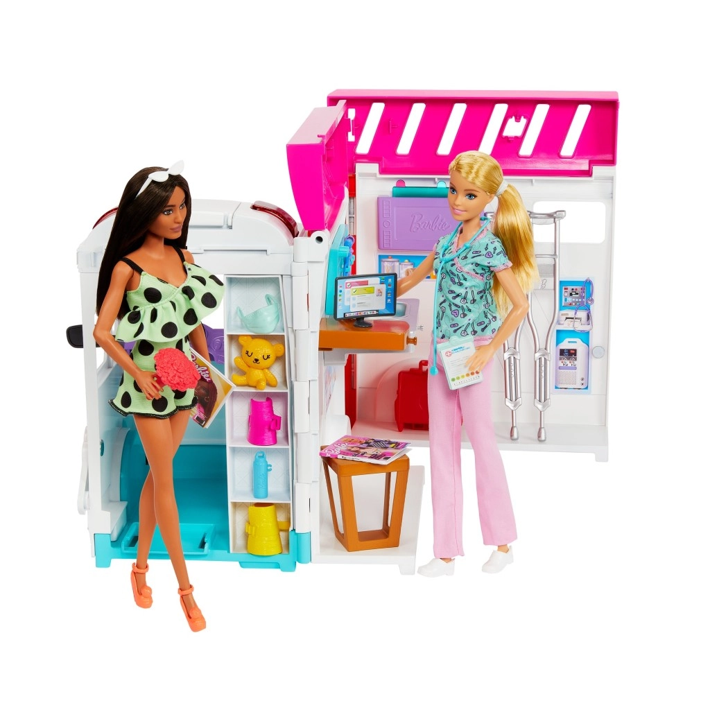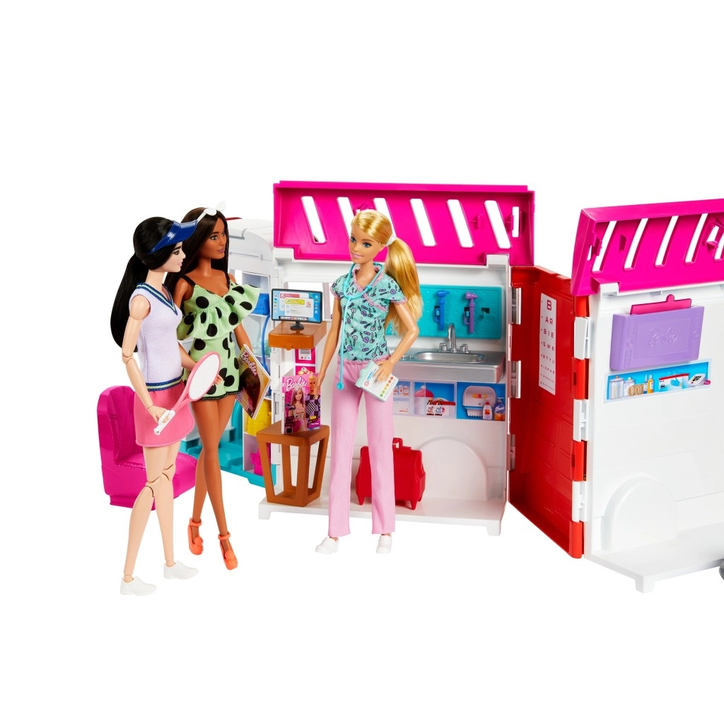 Atraskite žaidimo džiaugsmą su Barbės mobiliąja klinika, skirta mažiesiems gydytojams! Ši transformuojama greitoji stebina puikiai įrengtu interjeru: čia yra apžiūros stalas, registratūra ir laukiamasis. Vaikai gali lengvai perjungti tarp greitosios ir medicinos centro, todėl fantazijos kupinas žaidimas niekada nepabos.