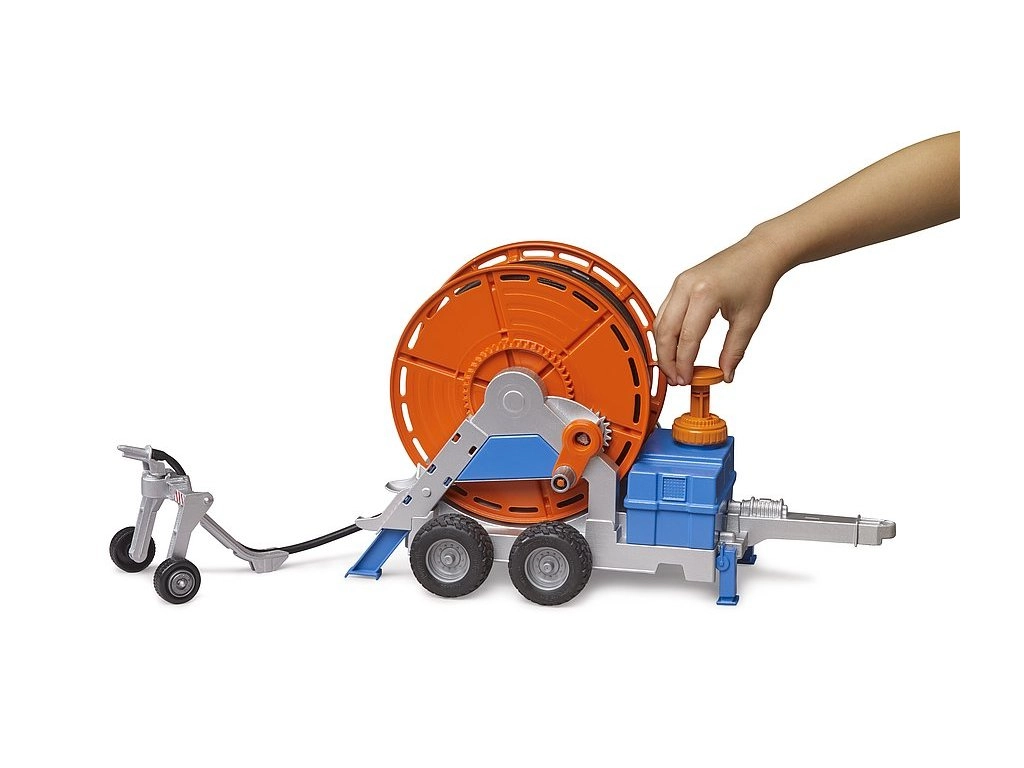 Suteikite savo ūkiui vandens kaip tikrovėje. BRUDER laistymo priekaba masteliu 1:16 turi ritę su rankenėle patogiam 1,8 m žarnos vyniojimui ir išvyniojimui bei baką su veikiančiu siurbliu, todėl vanduo tikrai teka. Vaikai mėgausis autentišku žaidimu laistant aikšteles, sodus ir laukus.