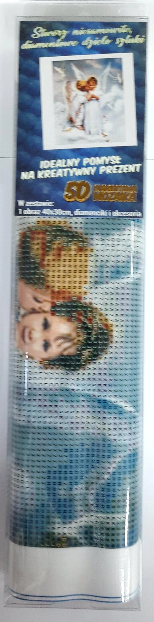 Atraskite atpalaiduojantį deimantinės tapybos pasaulį su angeliukų motyvu. Šis kūrybinis rinkinys siūlo lengvą ir smagų žėrinčios mozaikos kūrimą žingsnis po žingsnio. Pakuotėje yra viskas, ko reikia – drobė su atspaudu, akmenėliai, pieštukas, lėkštelė ir vaškas. Baigtą paveikslą, kurio dydis 30 × 40 cm, galite lengvai įrėminti ir papuošti juo savo namus.