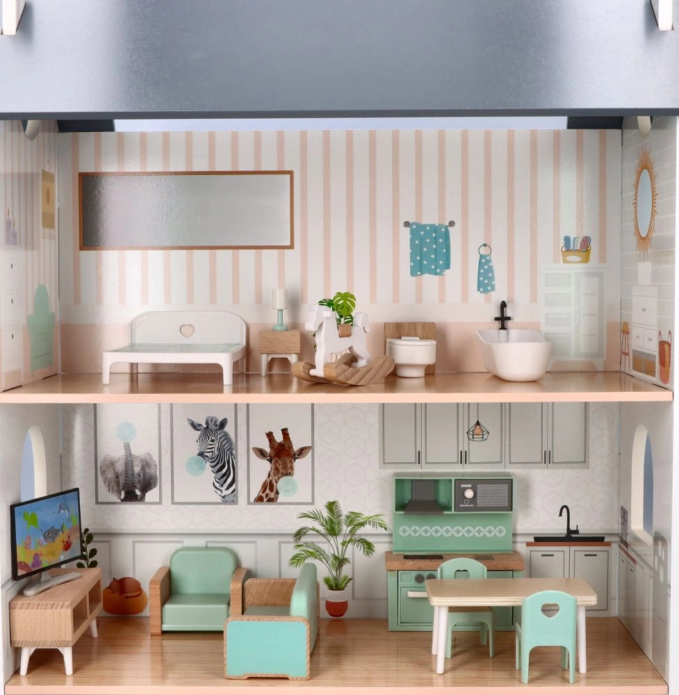 Lėlių namelis sukurtas taip, kad skatintų kūrybinį ir vaizduotę lavinantį žaidimą. Jį sudaro du aukštai, kuriuose vaikai gali kurti savo istorijas ir scenarijus. Medinė medžiaga užtikrina ilgaamžiškumą ir tvarumą.