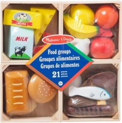 Ryškios spalvos ir lengvai atpažįstamos formos daro rinkinį patrauklų ir moko vaikus atpažinti įvairius maisto produktus.