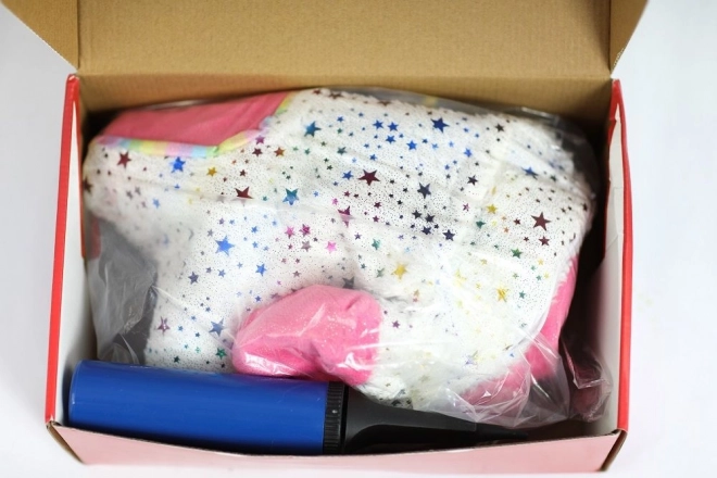 Pakuotėje yra praktiškas rankinis siurblys greitam pripūtimui. Užvalkalą galima lengvai nuimti su užtrauktuku ir paprastai išvalyti. Elegantiškas dizainas su žvaigždutėmis ir rožinėmis detalėmis puikiai tiks vaikų kambaryje ir skatins vaizduotę žaidžiant.