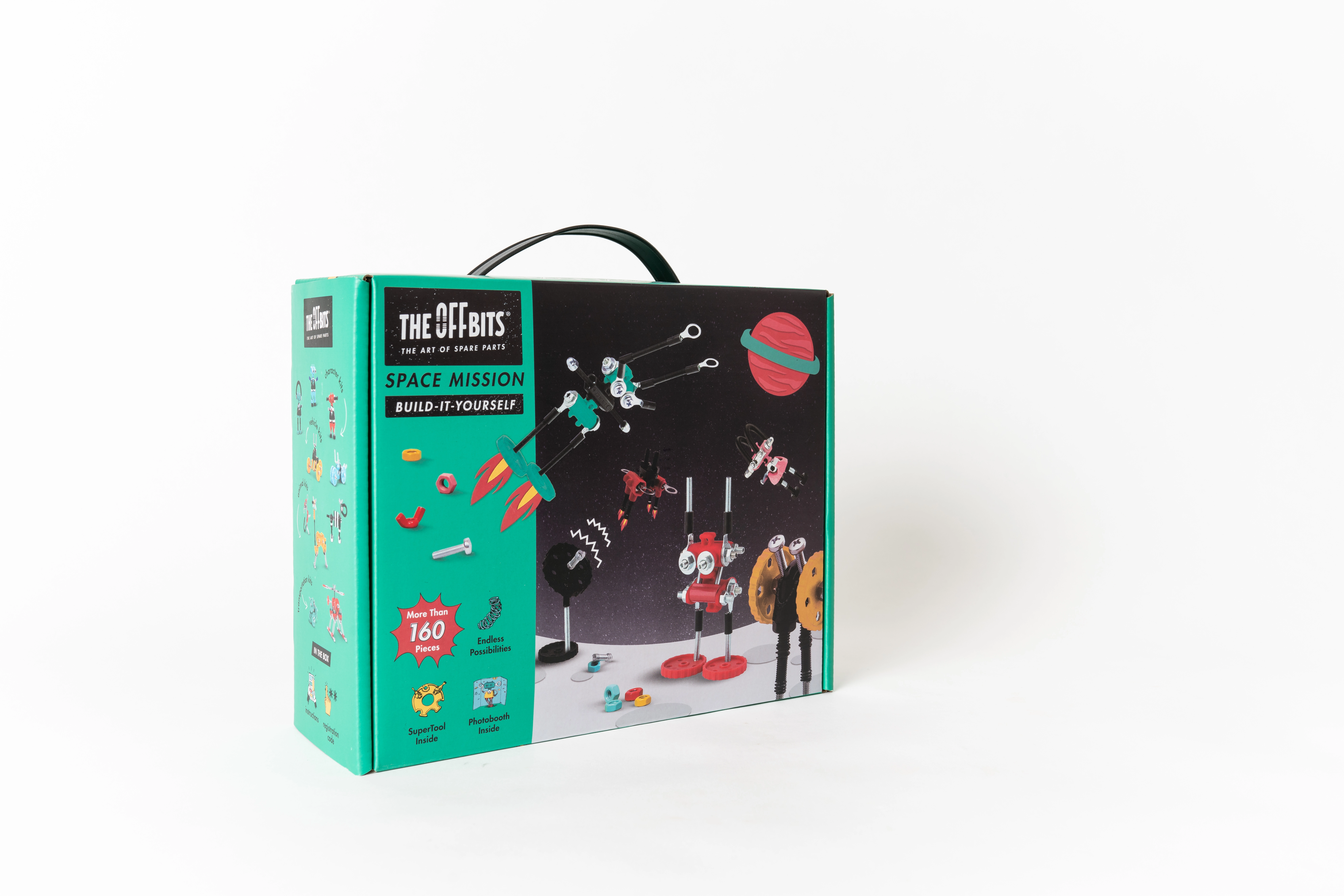 Leiskitės tyrinėti kosmosą su The OffBits konstruktoriaus rinkiniu Kosminė misija. Pakuotėje rasite daugiau nei 150 detalių iš spalvotų veržlių, varžtų ir formuotų komponentų, su kuriais pastatysite mažiausiai 3 modelius ir dešimtis savo kūrinių. Rinkinyje yra SuperTool įrankis, aiški detalių organizacija ir kūrybiškumo, smulkiosios motorikos bei loginio mąstymo ugdymas. Puikiai tinka vaikams nuo 8 metų.