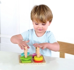 Su šiuo paprastu žaislu vaikai gali lavinti miklumą ir kantrybę, kartu mokytis atpažinti formas ir spalvas bei pagrindinius skaičiavimo įgūdžius. Žaislas pagamintas iš kokybiškos FSC® medienos ir puikiai tinka mažiausiųjų gebėjimų ugdymui.