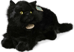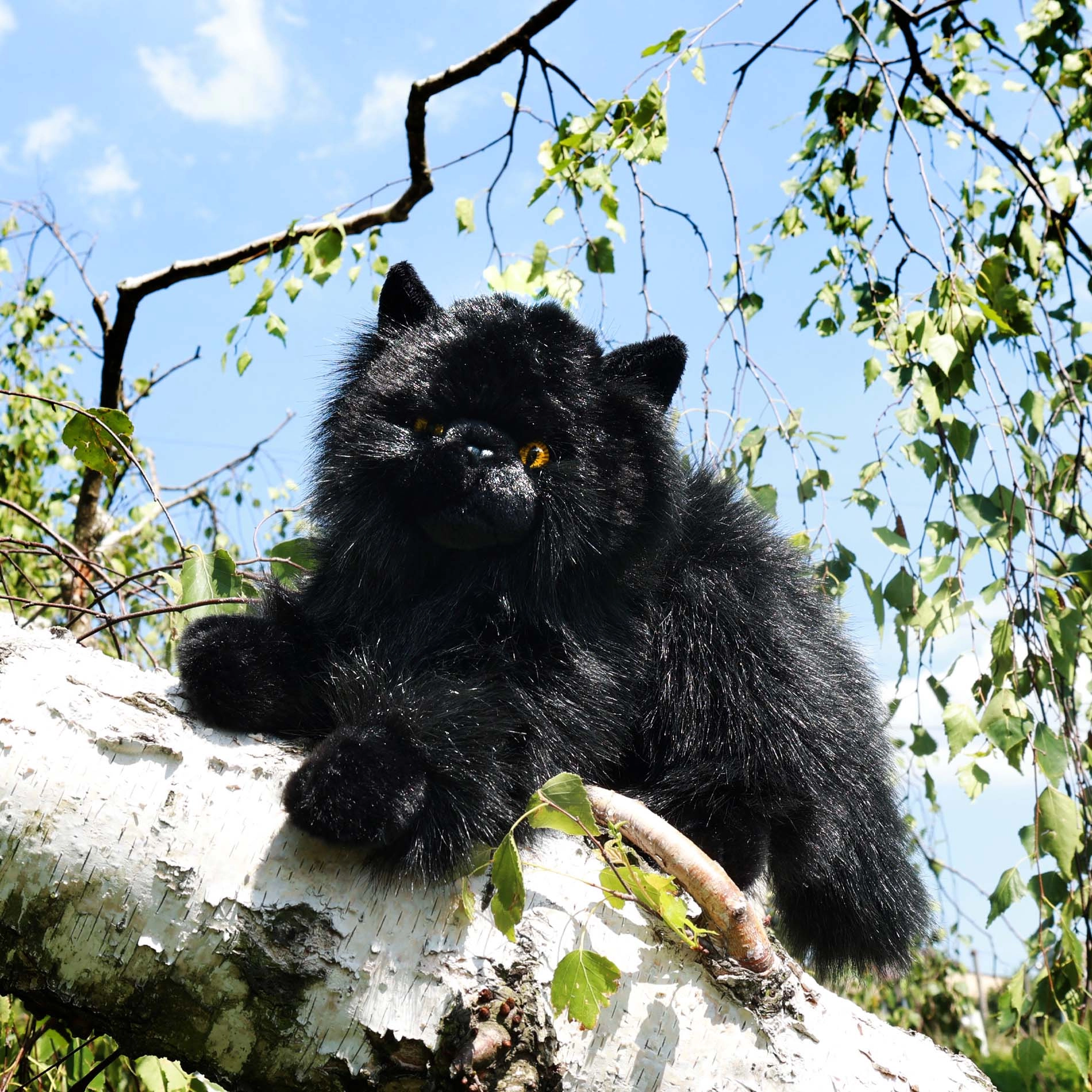 Ši švelni juoda katė su ryškiomis geltonomis akimis atrodo lyg tikra ir puikiai tinka glostymui bei kaip vaikų kambario dekoracija. Aukštos kokybės medžiagos ir detalus siuvimas užtikrina ilgaamžiškumą net ir dažnai žaidžiant.