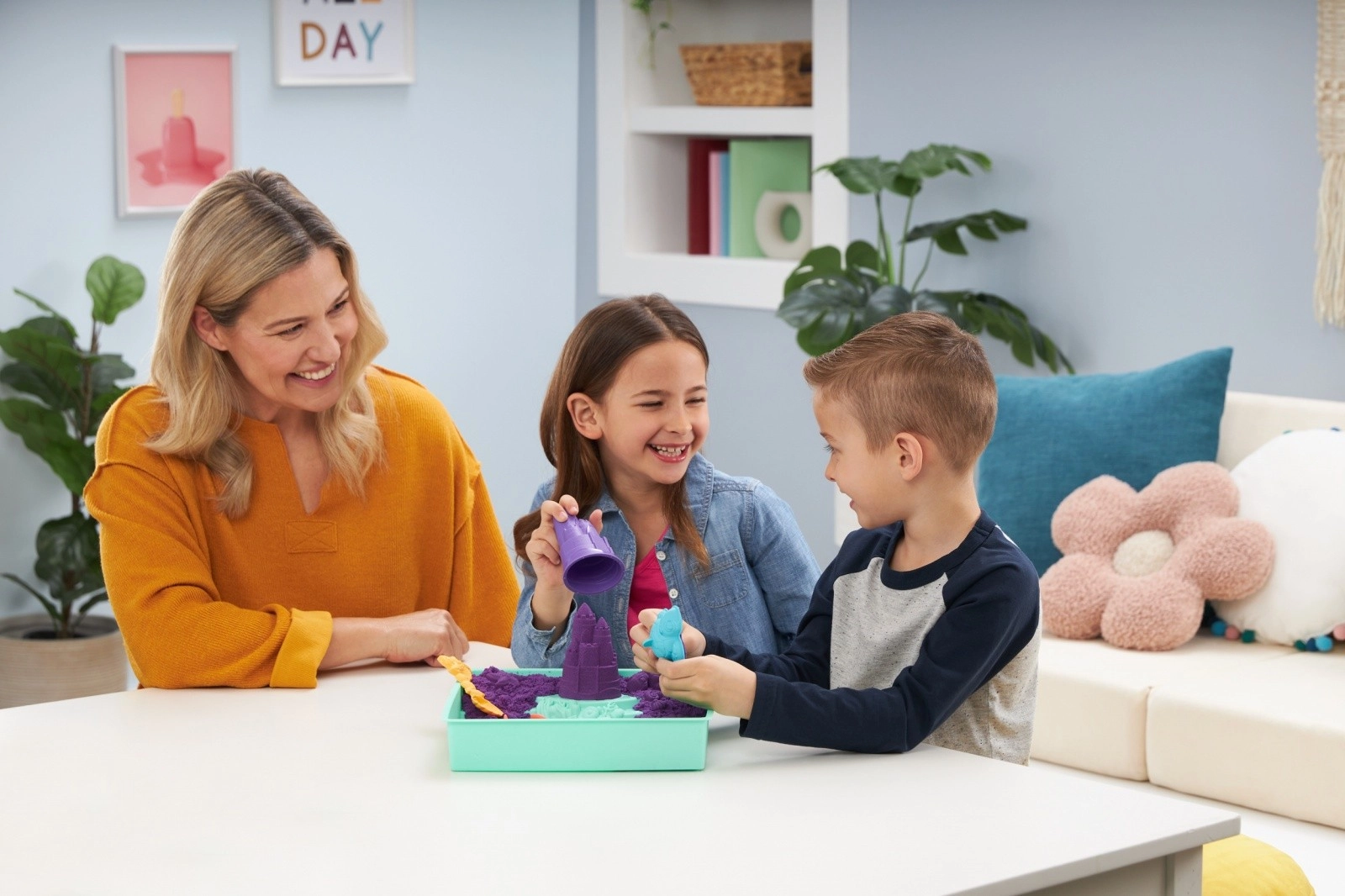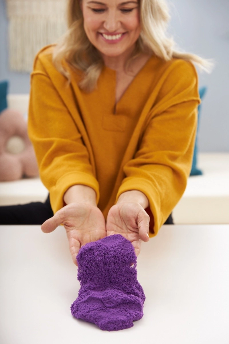 Rinkinyje yra 454 g violetinio smėlio, semtuvėlis ir formelės (pvz., pilis, krabas, vėžlys), su kuriomis vaikai sukurs be galo daug formų. Smėlis niekada neišdžiūsta, todėl prie jo galima grįžti vėl ir vėl. Puiki alternatyva plastilinui ir kitiems kūrybiniams užsiėmimams – tinka namų dirbtuvėms, Montessori veikloms ir kaip dovana berniukams ir mergaitėms.