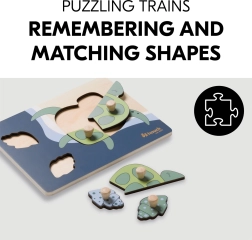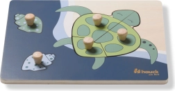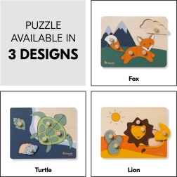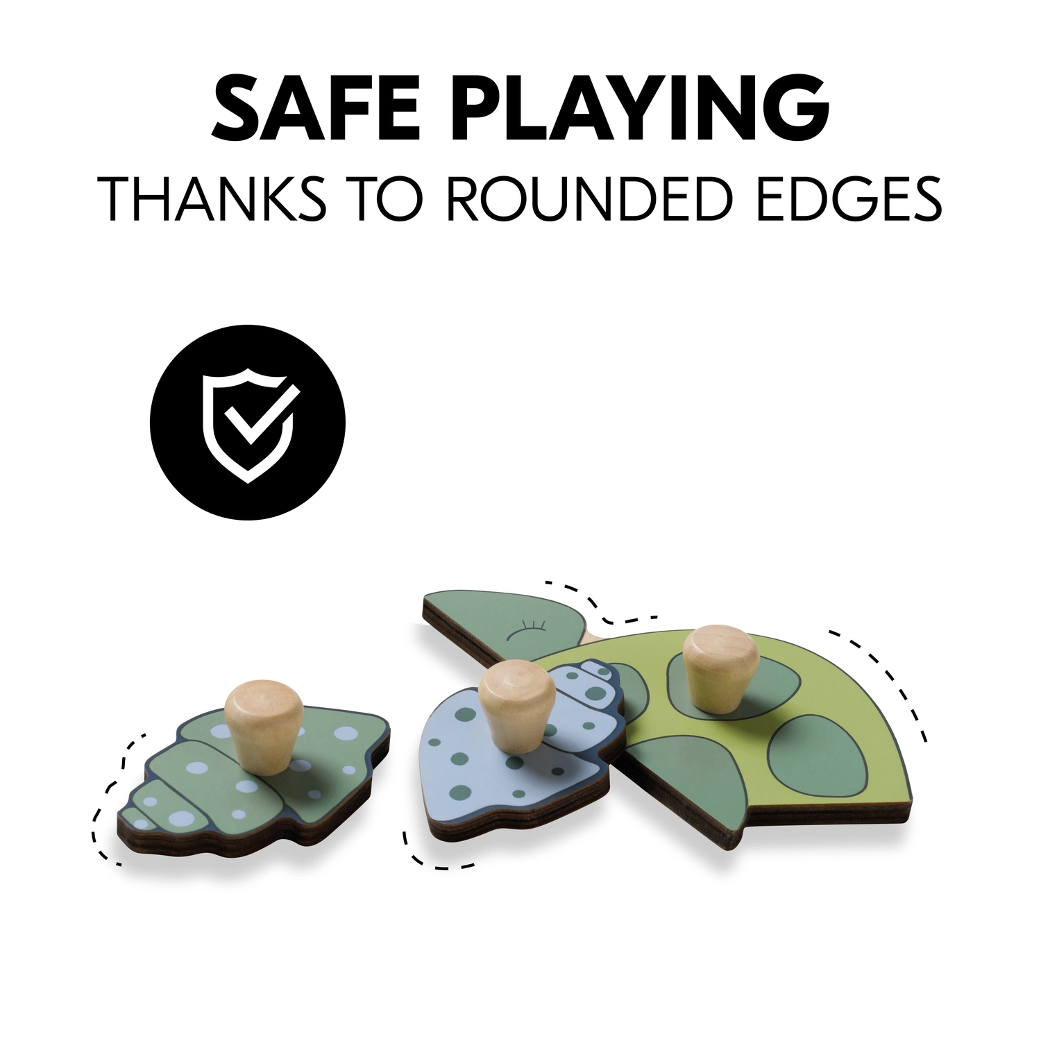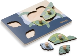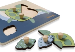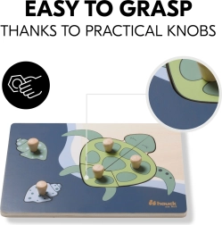 Medinė dėlionė su rankenėlėmis „Vėžlys“ sukurta mažoms vaikų rankoms. Kiekviena detalė turi medinį knopkelį, kad būtų lengva suimti ir tiksliai įdėti. Dėliodamas vaikas treniruoja smulkiąją motoriką, akių ir rankų koordinaciją, atmintį ir formų bei spalvų suvokimą. Užapvalinti kraštai užtikrina saugų žaidimą jau nuo 12 mėnesių.