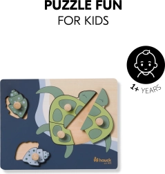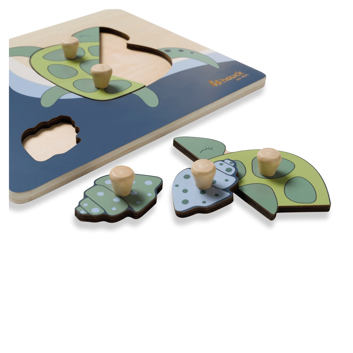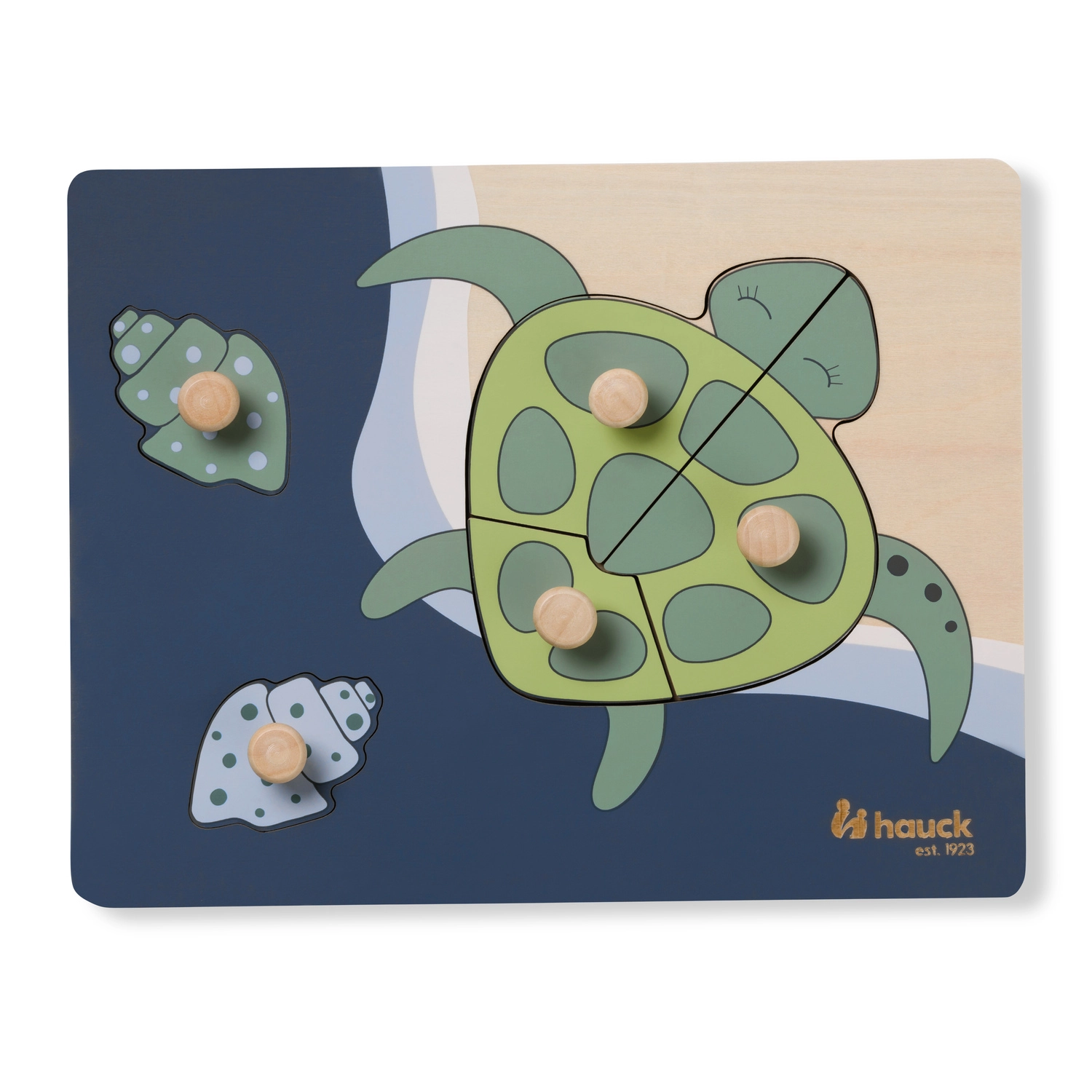 Atraskite mielą medinę vėžlio motyvo dėlionę iš HAUCK – idealiai tinka kaip pirmoji dėlionė patiems mažiausiems. Dėl patogių rankenėlių detales lengva laikyti ir įdėti į vietą. Žaidimas lavina smulkiąją motoriką, rankų ir akių koordinaciją, formų atpažinimą ir sutelktą dėmesį. Pagaminta iš FSC sertifikuotos medienos, su saugiais užapvalintais kraštais ir harmoningomis, vaikams draugiškomis spalvomis.