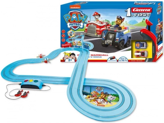 Smagi lenktynių trasa mažiausiems su PAW Patrol motyvu ir 3,5 m ilgio atkarpa siūlo paprastą valdymą, interaktyvius žaidimus, šviesas ir garsus. Rinkinyje yra automobiliai Chase ir Marshall, propeleriai dar didesniam funui, tiesiosios ir posūkiai. Ideali pirmoji trasa vaikams nuo 3 metų, veikia su baterijomis, veikimo trukmė iki 6 valandų.
