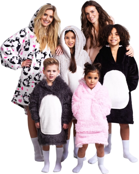 Didelis gyvūno motyvo gobtuvas – vienaragis ir „kengūros“ tipo kišenė patikimai sušildo galvą ir rankas. Antklodė idealiai tinka poilsiui prie televizoriaus, pižamų dienoms, kelionėms, stovyklavimui ir vėsesniems vakarams sode.