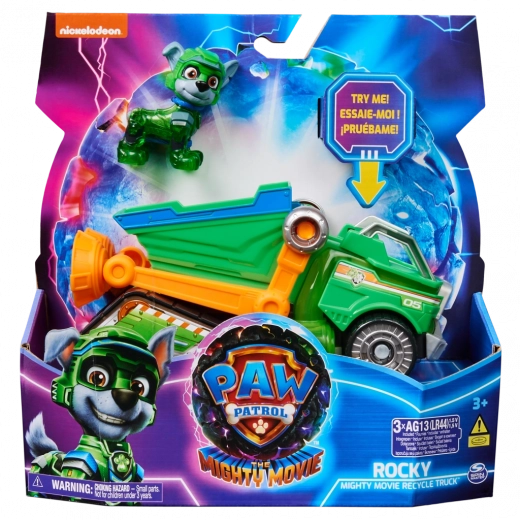 Mėgstamas Spin Master žaislas, įkvėptas serialo PAW Patrol, pristato Rokio figūrėlę ir jo žalią perdirbimo sunkvežimį su šviesos ir garso efektais. Vaikas gali pasodinti figūrėlę į transporto priemonės vidų, o įdėjus ji įjungia efektus. Puiki dovana visiems mažiesiems gerbėjams nuo 3 metų.