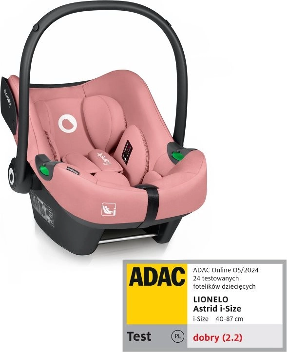 LIONELO Astrid i-Size yra saugi ir patogi autokėdutė/kūdikio nešynė, sukurta vaikams nuo 40 iki 87 cm. Patvarus PP korpusas, sustiprintas EPP užpildu, puikiai sugeria smūgius, o atminties puta galvos atloše saugo jautrią galvos ir kaklo sritį. Dėl mažo svorio ir patogios rankenos nešimas yra paprastas ir greitas.