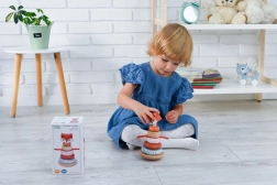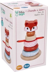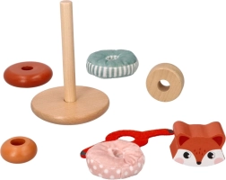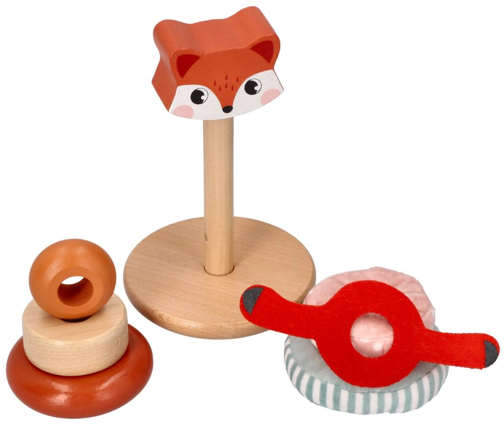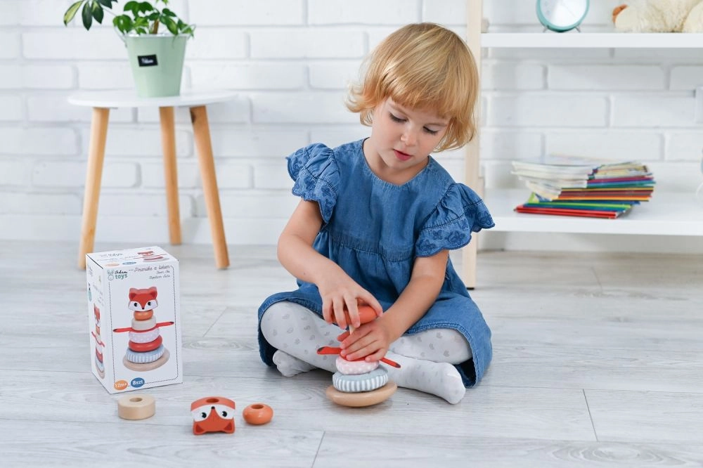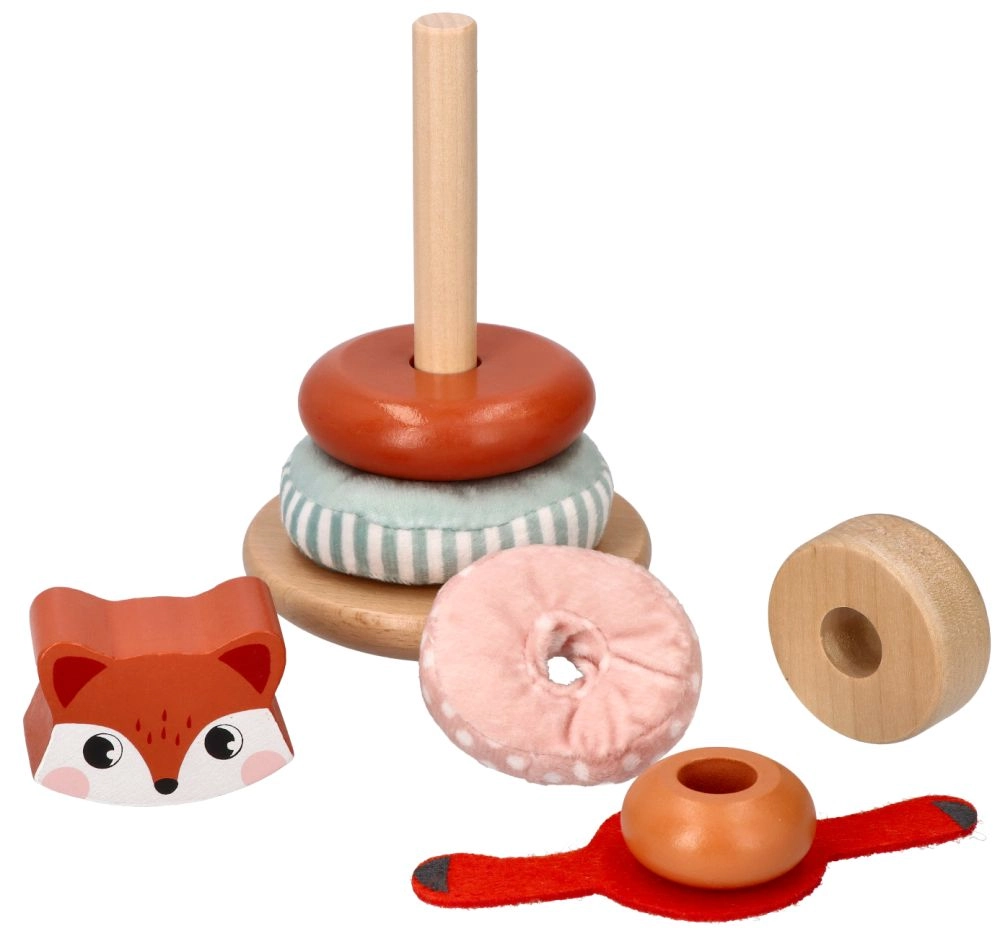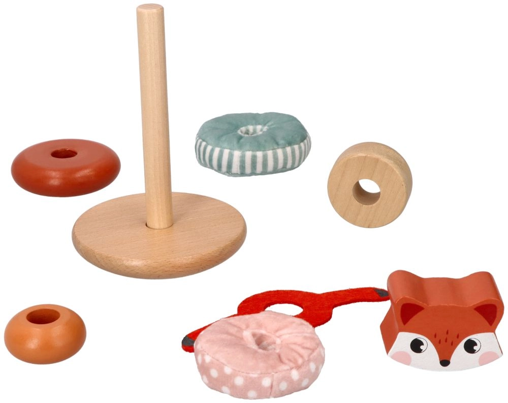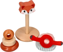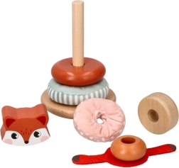 Kraunamas bokštas su lapės motyvu – ideali priemonė mažyliams, norintiems tyrinėti savo pojūčius. Kiekviena žaislo dalis siūlo skirtingas tekstūras – nuo glotnaus medžio iki minkštų audinių – ir padeda ugdyti sensorinę integraciją. Ryškios spalvos bei raštai padeda gerinti regimąją percepciją, o dalių dėliojimas ir manipuliavimas stiprina smulkiąją ir stambiąją motoriką.