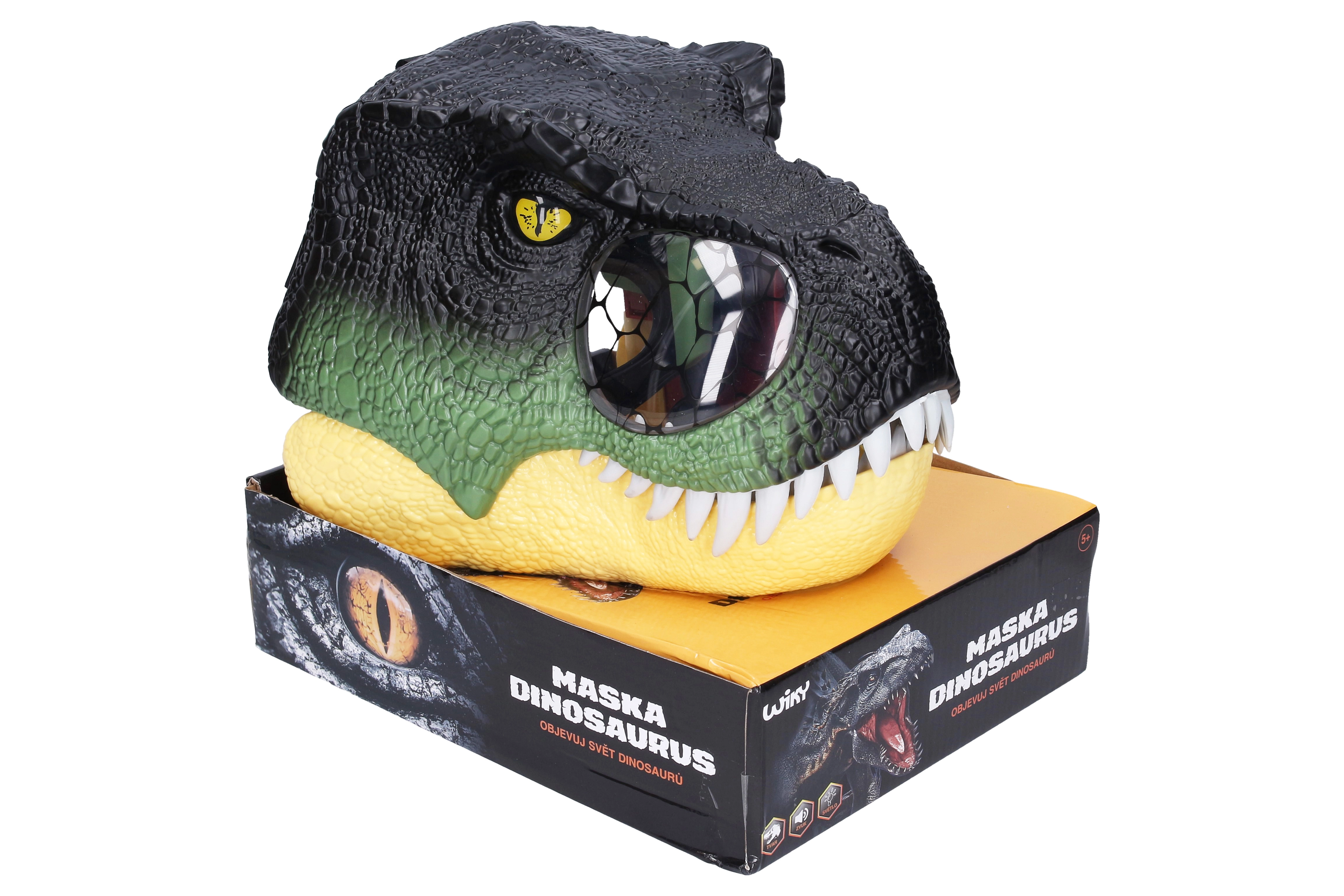 Realistiška dinozauro kaukė pavers kiekvieną vaiką priešistoriniu plėšrūnu. Judinant galvą atsidaro žandikaulis, įsižiebia akys ir pasigirsta dinozauro riaumojimas. Komplekte yra 3× AG13 baterijos, tad pramoga gali prasidėti iškart.