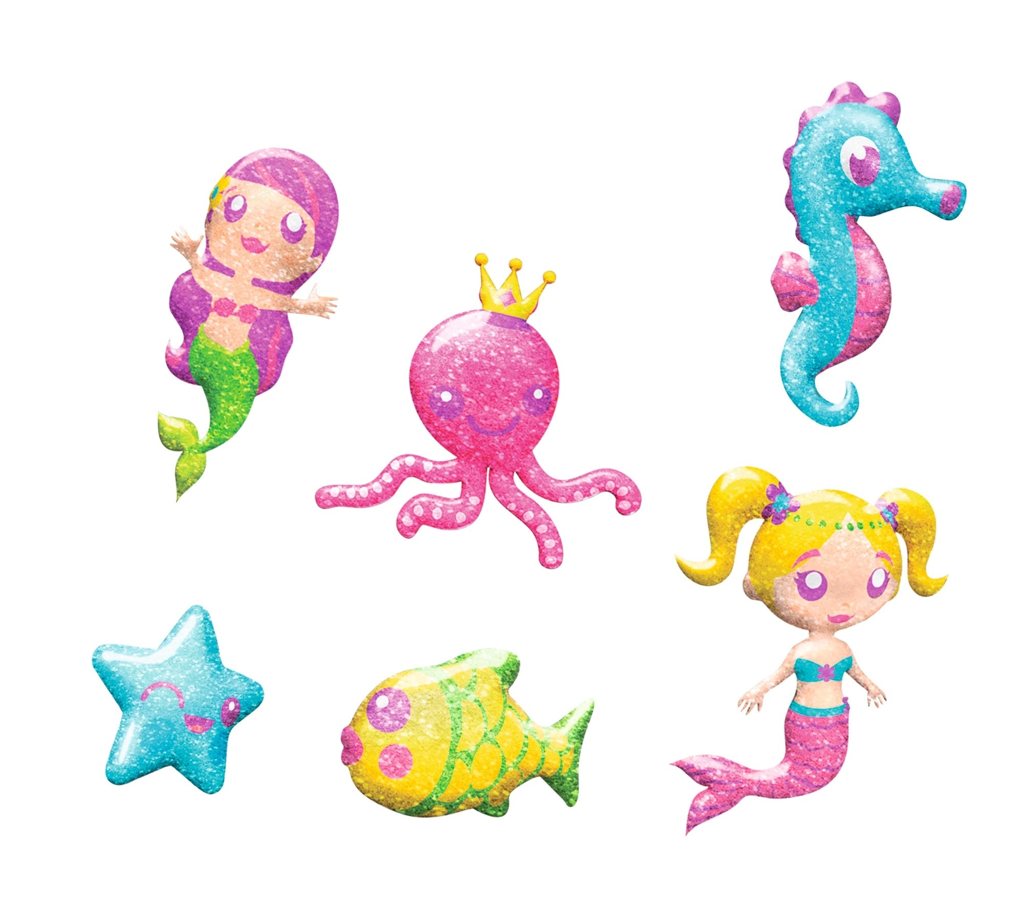 Praktišką pakuotę galima naudoti kaip daugkartinį indą vandeniui. Blizgučiai suteikia darbams magiško spindesio, o šešios formelės užtikrina daug variantų. Rinkinys puikiai tinka kūrybiškumui, kantrybei ir spalvų pojūčiui lavinti.