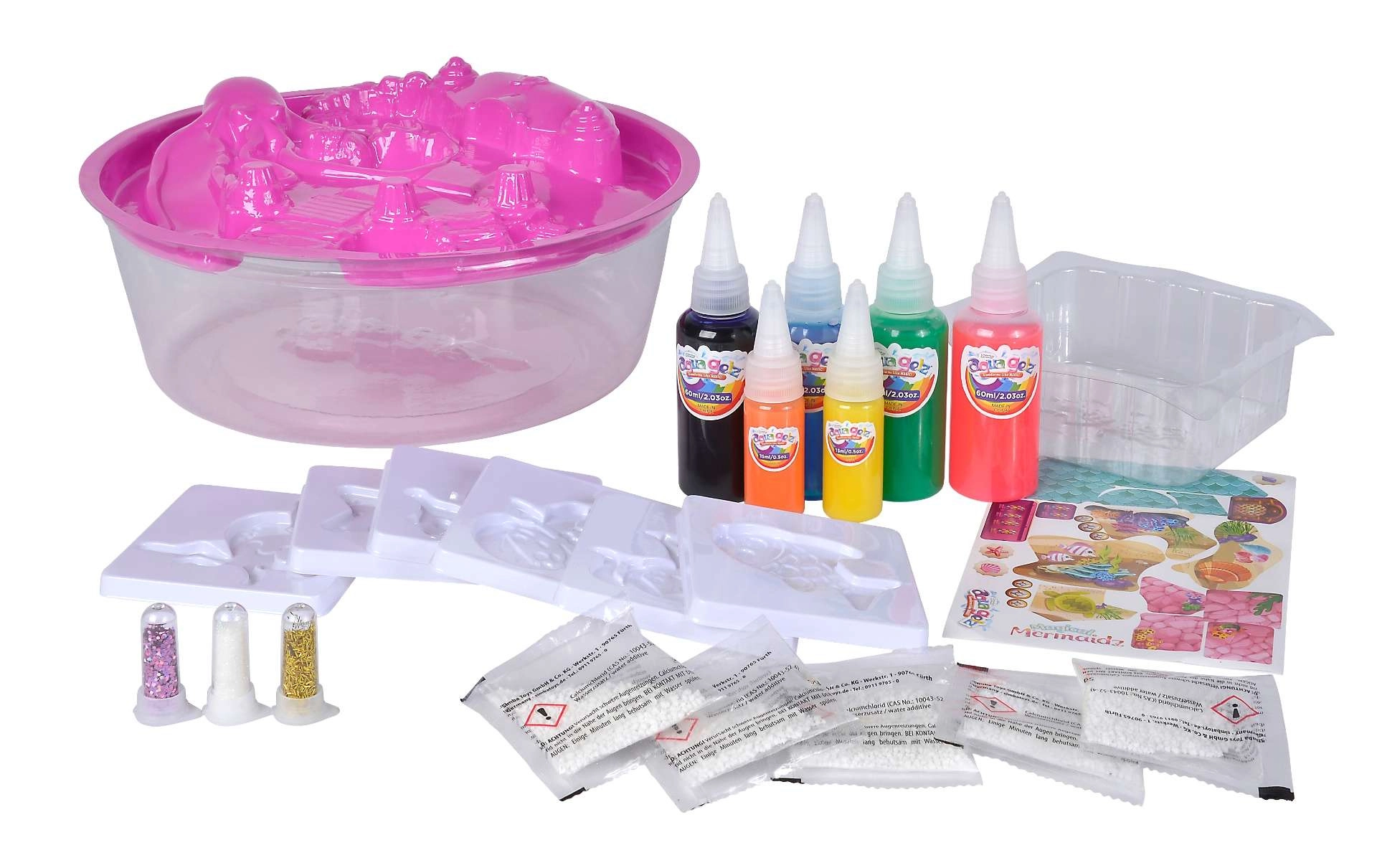 Rinkinys Aqua Gelz Magiškos undinėlės suteikia vaikams begalę pramogų prie vandens ir prie stalo. Naudodami specialų tirpalą ir spalvotus gelius, jie akimirksniu sukurs 3D figūrėles jūrų gyvūnų ir undinėlių. Dėl paprastos eigos ir tikslių aplikatorių kūryba yra lengva, švari ir įtraukianti.