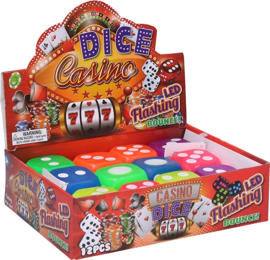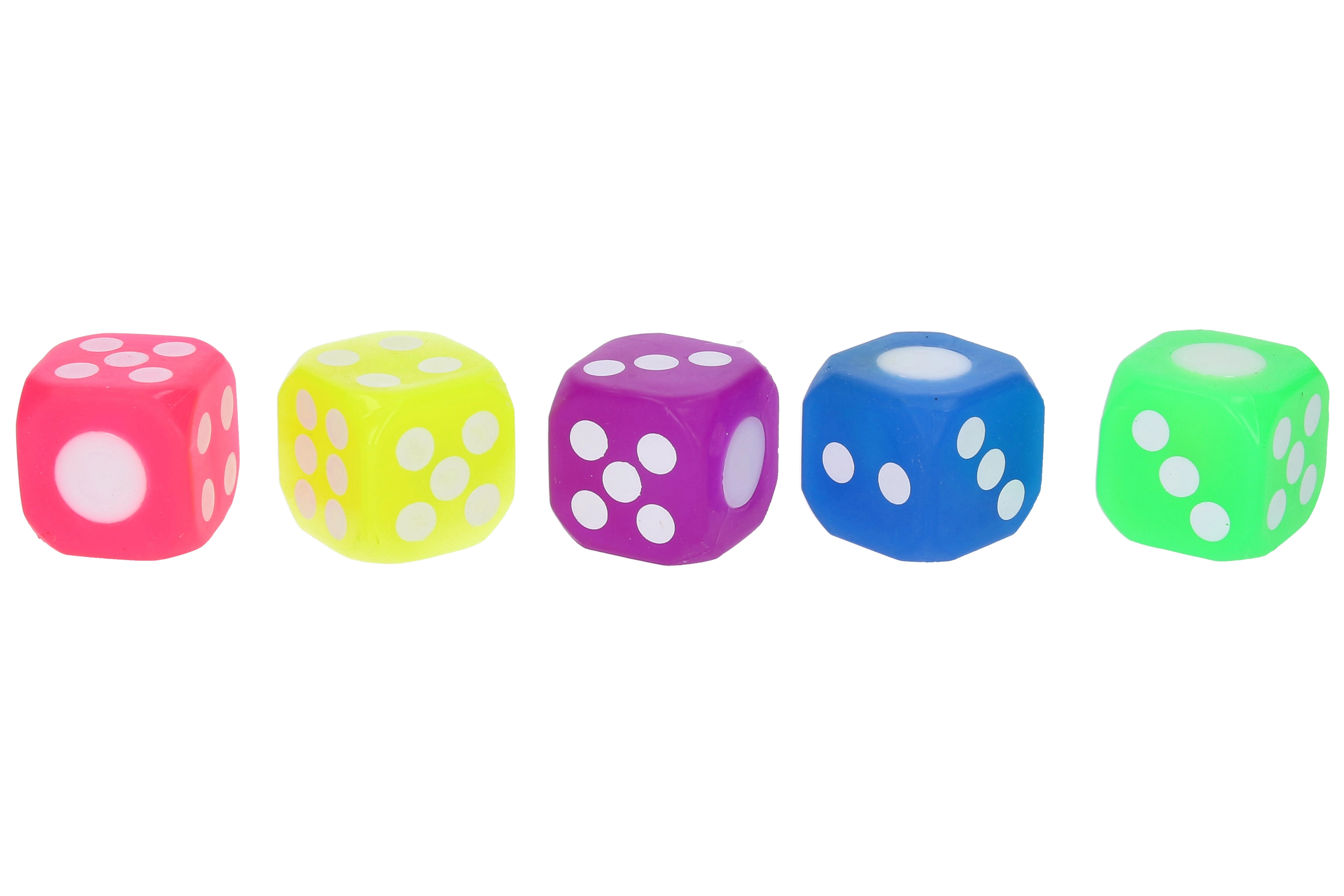 Rinkitės iš 6 patrauklių spalvų – oranžinė, mėlyna, žalia, geltona, violetinė ir rožinė. Kauliukas tiekiamas display dėžutėje po 12 vienetų, todėl idealiai tinka parduotuvėms, žaidimų erdvėms ar didesniems renginiams.