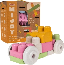 Kūrybinė BIO kaladėlių dėlionė vaikams nuo 18 mėnesių yra ekologiška ir pagaminta iš bioplastiko. Šiame rinkinyje yra 43 pastelinių spalvų detalės su apvalintais kraštais, kurios lavina smulkiąją motoriką ir kūrybiškumą.