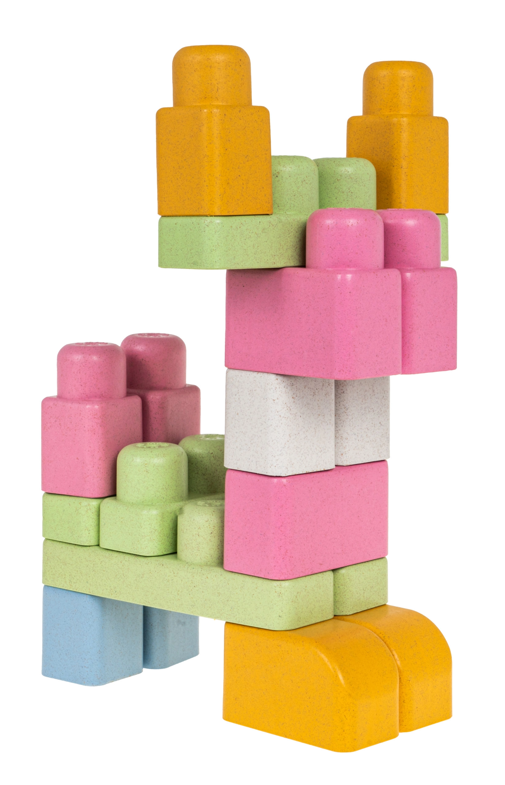 Rinkinyje yra 43 detalės pastelinių spalvų su apvalintais kraštais, leidžiančios vaikui statyti įvairias konstrukcijas.