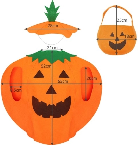 Pristatome tobulą vaikišką moliūgo kostiumą Helovinui. Dėl universalių išmatavimų šis rinkinys puikiai tinka tiek jaunesniems, tiek vyresniems vaikams. Jis idealiai tinka šventėms ir, dėl patogumo, pradžiugins kiekvieną vaiką.