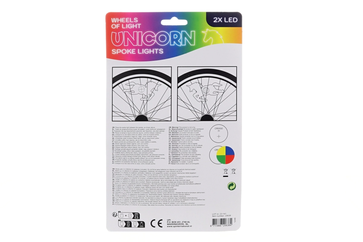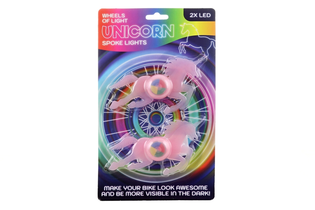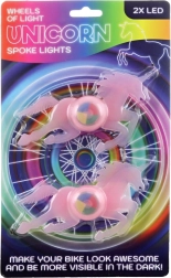 Padidinkite savo matomumą ir suteikite kelionei dviračiu šiek tiek magijos su šiomis stilingomis LED dviračio švieselėmis su vienaragių motyvu. Pakuotėje yra du šviesos elementai, kuriuos lengvai pritvirtinsite prie dviračio stipinų.