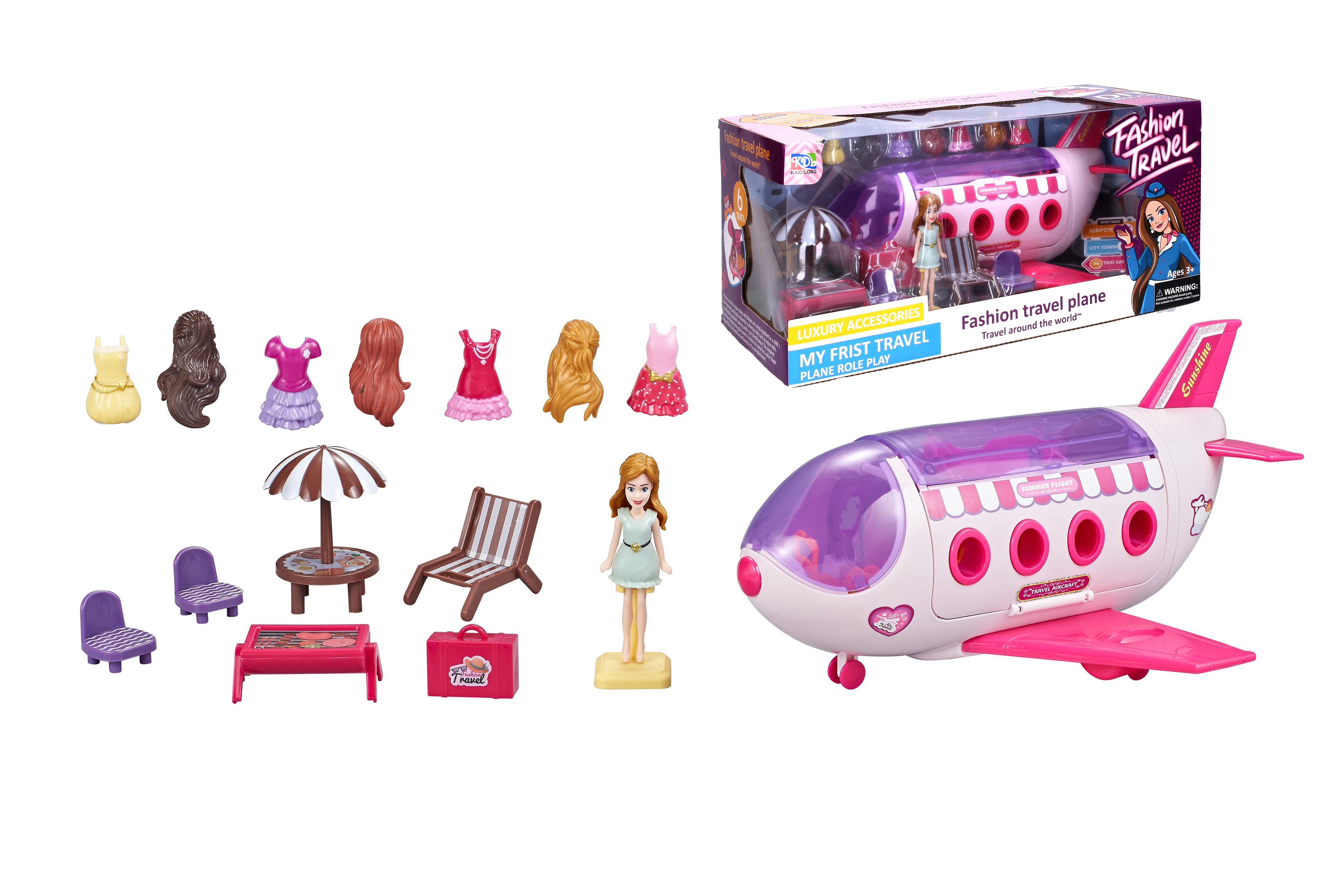 Atraskite pramogas ant sparnų su vaikų rinkiniu lėktuvas su lėlyte ir priedais, kurio ilgis 28 cm. Pakuotėje rasite lėktuvą, žavią lėlytę, sodo baldus su griliumi ir dar sukneles bei plaukus lėlytei kūrybingam persirengimui.