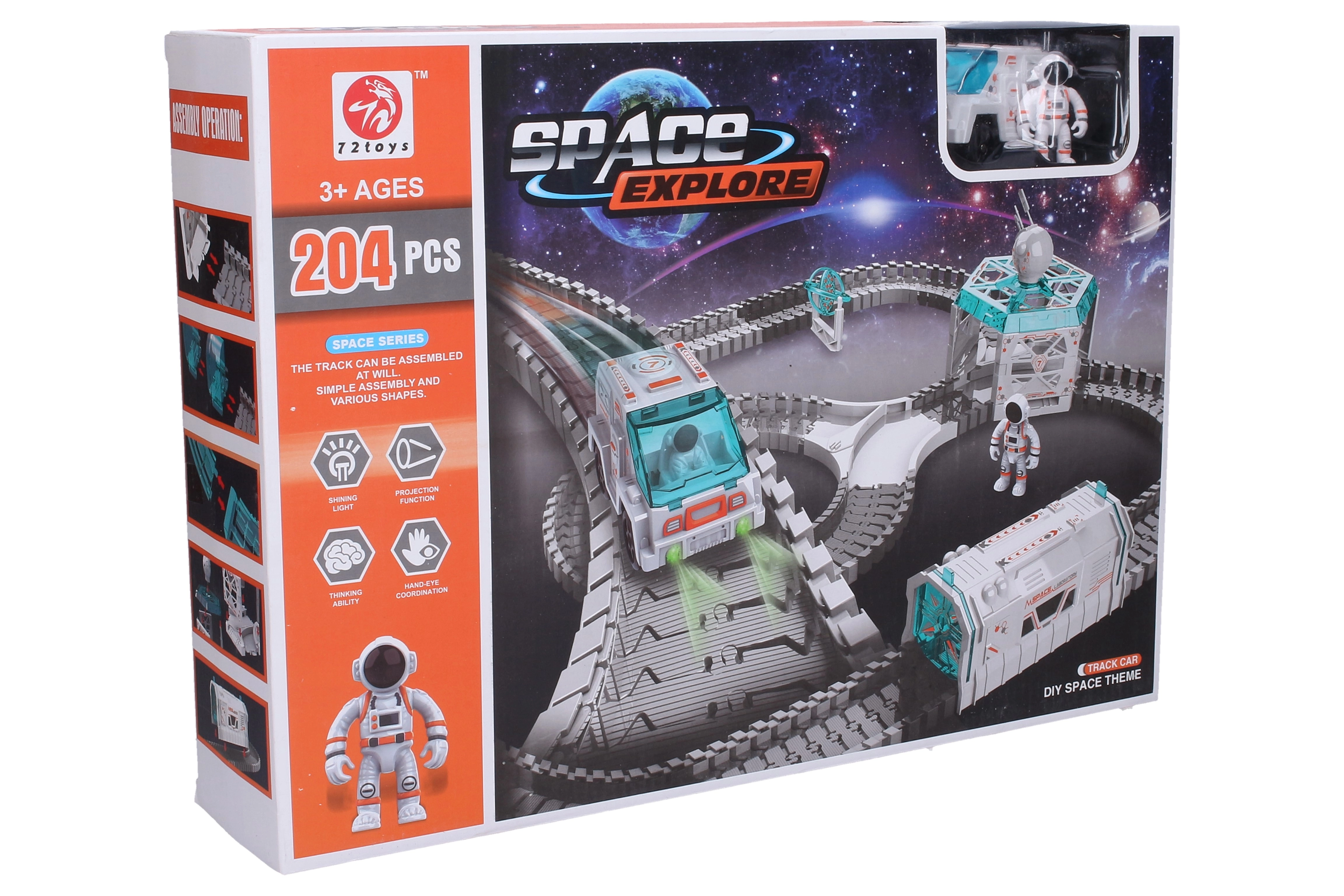 Ši didelė kosminė trasa suteiks vaikams valandų valandas kūrybiško žaidimo. Dėl veikiančio projektoriaus su šviesos efektais kiekvienas važiavimas atgyja, o priedai, tokie kaip automobilis ir astronautas, skatina vaizduotę ir siužetinį žaidimą. Aiškus iliustruotas vadovas ant pakuotės palengvina greitą ir paprastą surinkimą.