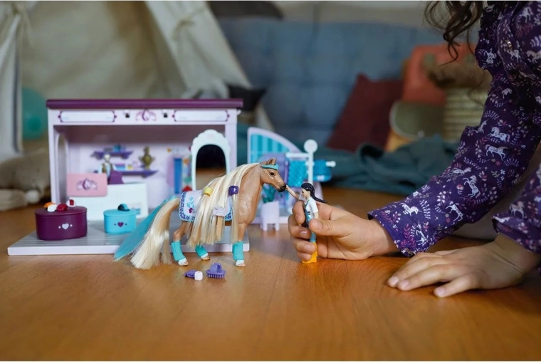 - Išsipildžiusios svajonės: Sulankstomas žirgų grožio salonas iš HORSE CLUB Sofia's Beauties – drobė jūsų fantazijai! Šukuokite ir keiskite karčius bei uodegą kaip panorėję.