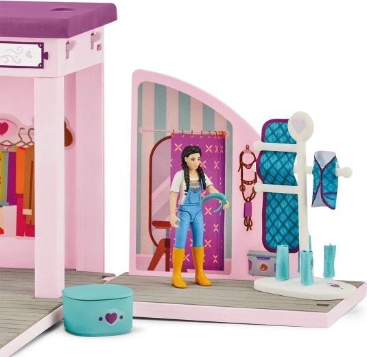 Sulankstomas žirgų grožio salonas iš Schleich HORSE CLUB Sofia's Beauties kolekcijos – idealus visiems žirgų mylėtojams. Jame rasite puikių apklotų ir aksesuarų kelių spalvų, tad kiekvienas žirgas turės savo stilių. Ar žinojote, kad karčius ir uodegą galima ne tik šukuoti ir tvarkyti, bet ir lengvai keisti? Dėl to Sofija ir jos kumelė neprivalo apsiriboti vienu įvaizdžiu. Tai tobula bet kuriai fotosesijai – net ir kieme. Rinkinį lengva sulankstyti ir kelionei vėl išlankstyti.