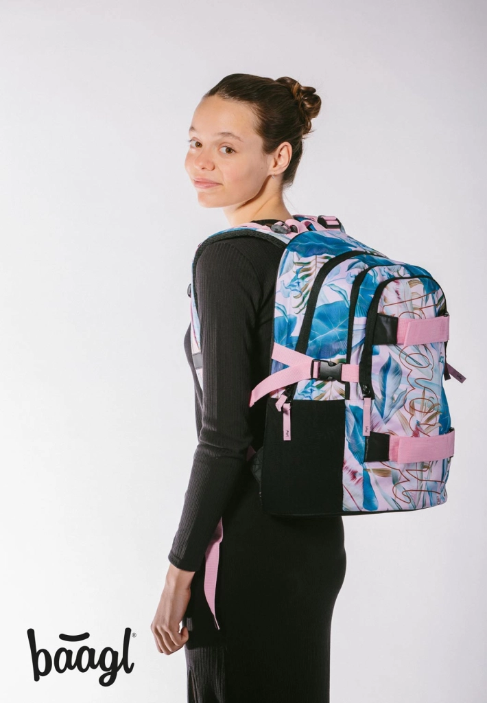 Penalas Skate Leafs turi tvirtą konstrukciją su atverčiama vidine pertvara ir kišene su užtrauktuku, kad būtų lengva susitvarkyti mokyklines priemones. Kai kuprinėje pritrūksta vietos, BAAGL logotipu pažymėtas Skate Leafs maišelis tampa puikiu pagalbininku – jį galima plauti, be to, jis švyti tamsoje.