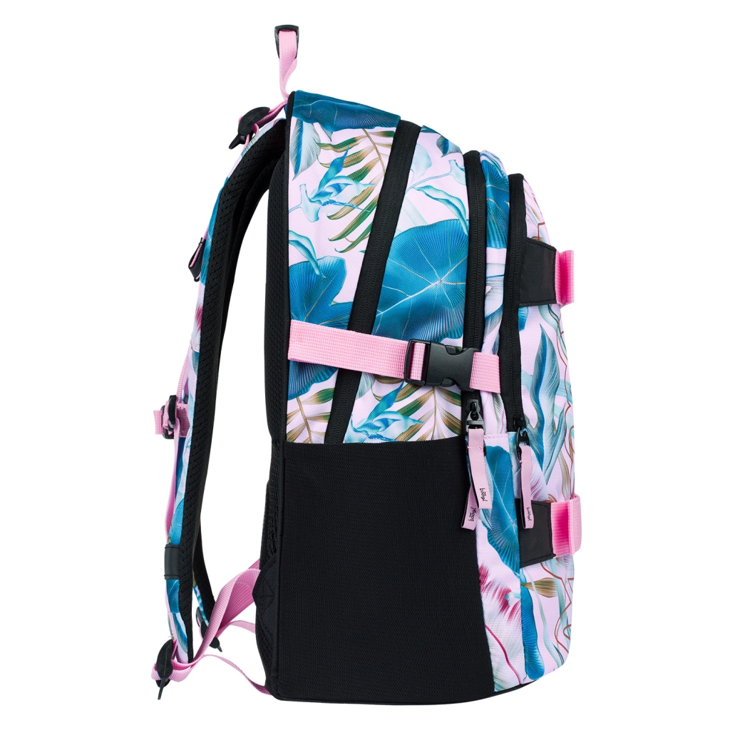 Mokyklinė kuprinė Skate Leafs siūlo tris atskirai užsegamus skyrius su organizatoriumi ir kišene nešiojamajam kompiuteriui ar planšetei. Dėl ergonomiškai suformuotos nugarėlės ir visiškai reguliuojamų diržų kuprinė idealiai prisitaiko prie jūsų kūno. Du priekiniai diržai leidžia lengvai pritvirtinti riedlentę, o šoninės tinklinės kišenės puikiai tinka gertuvėms.