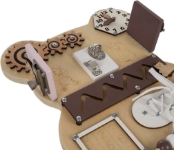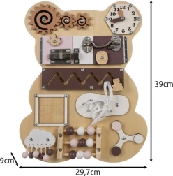 Medinė sensorinė Kruzzel lenta puikiai sukurta vaikų raidai skatinti. Meškos forma ir gausybė interaktyvių elementų suteikia daug valandų pramogų ir mokymosi. Ši lenta ne tik smagi, bet ir edukacinė, todėl yra nepakeičiamas įrankis vaikų ugdymui.