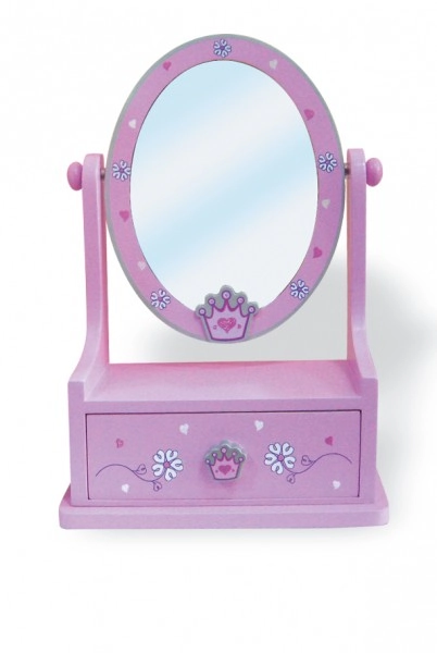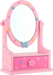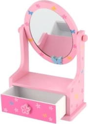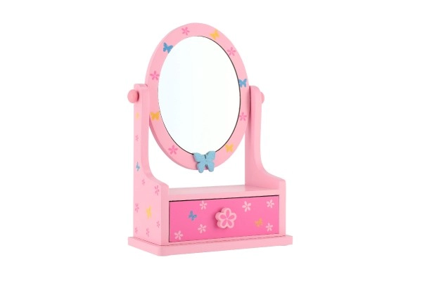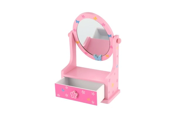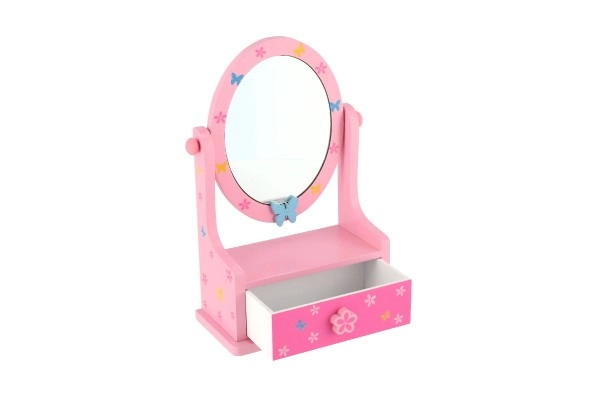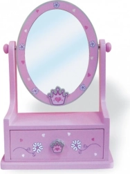 Medinė papuošalų dėžutė su veidrodžiu mažosioms princesėms