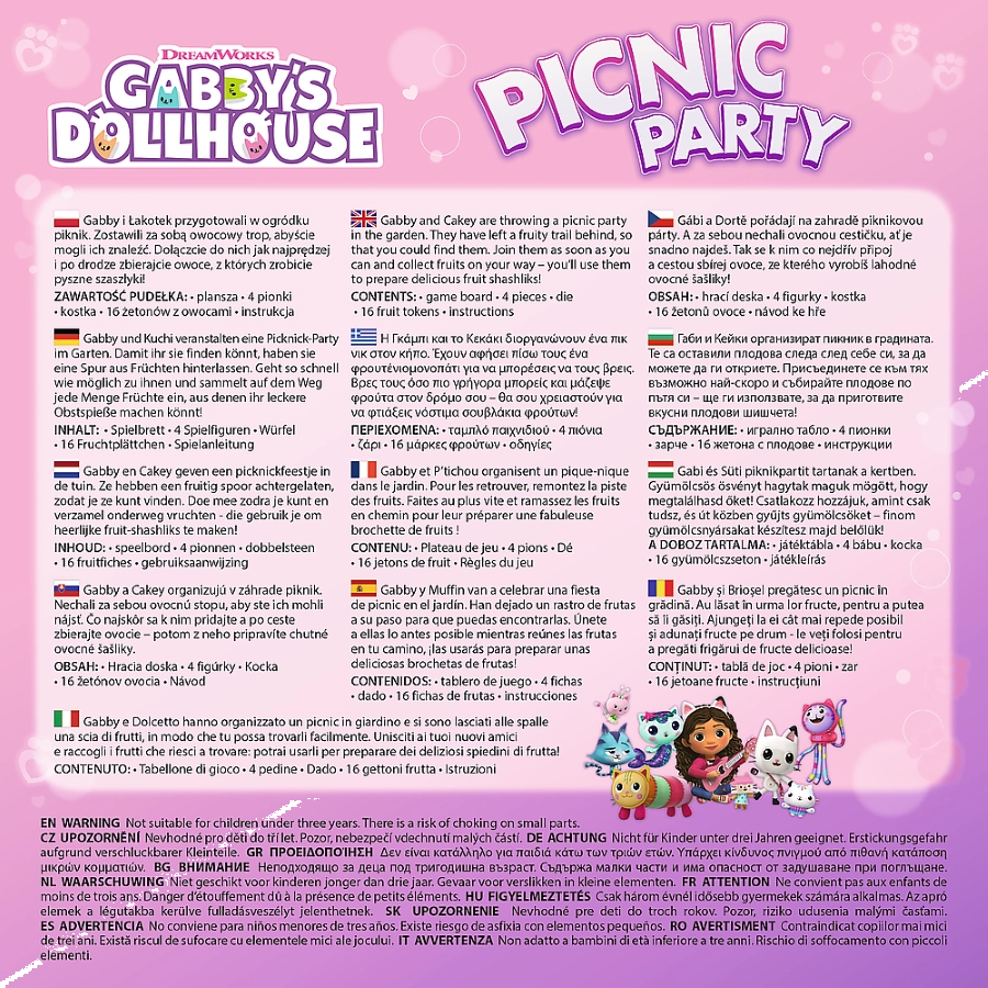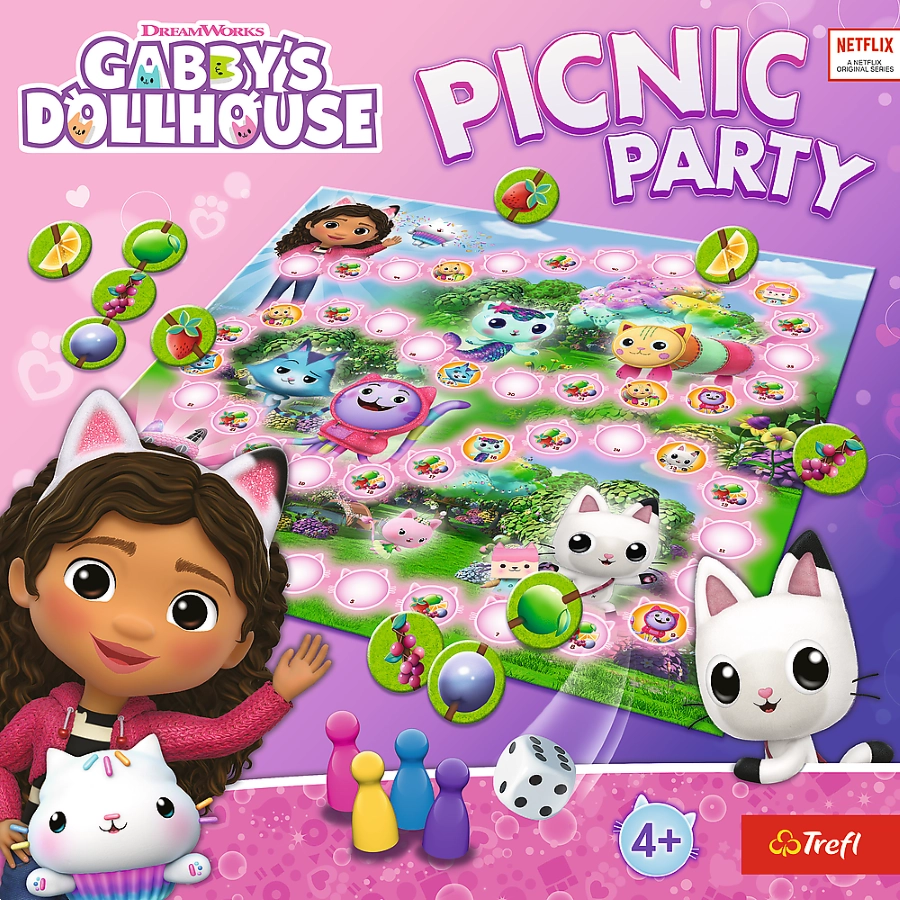Gabinės stebuklingas namelis: Pikniko vakarėlis – tai linksmas stalo žaidimas, kuriame Gabė ir jos draugai rengia sodo pikniko vakarėlį. Rink vaisius, kuriuos rasi, ir pasigamink skanius vaisių iešmelius!