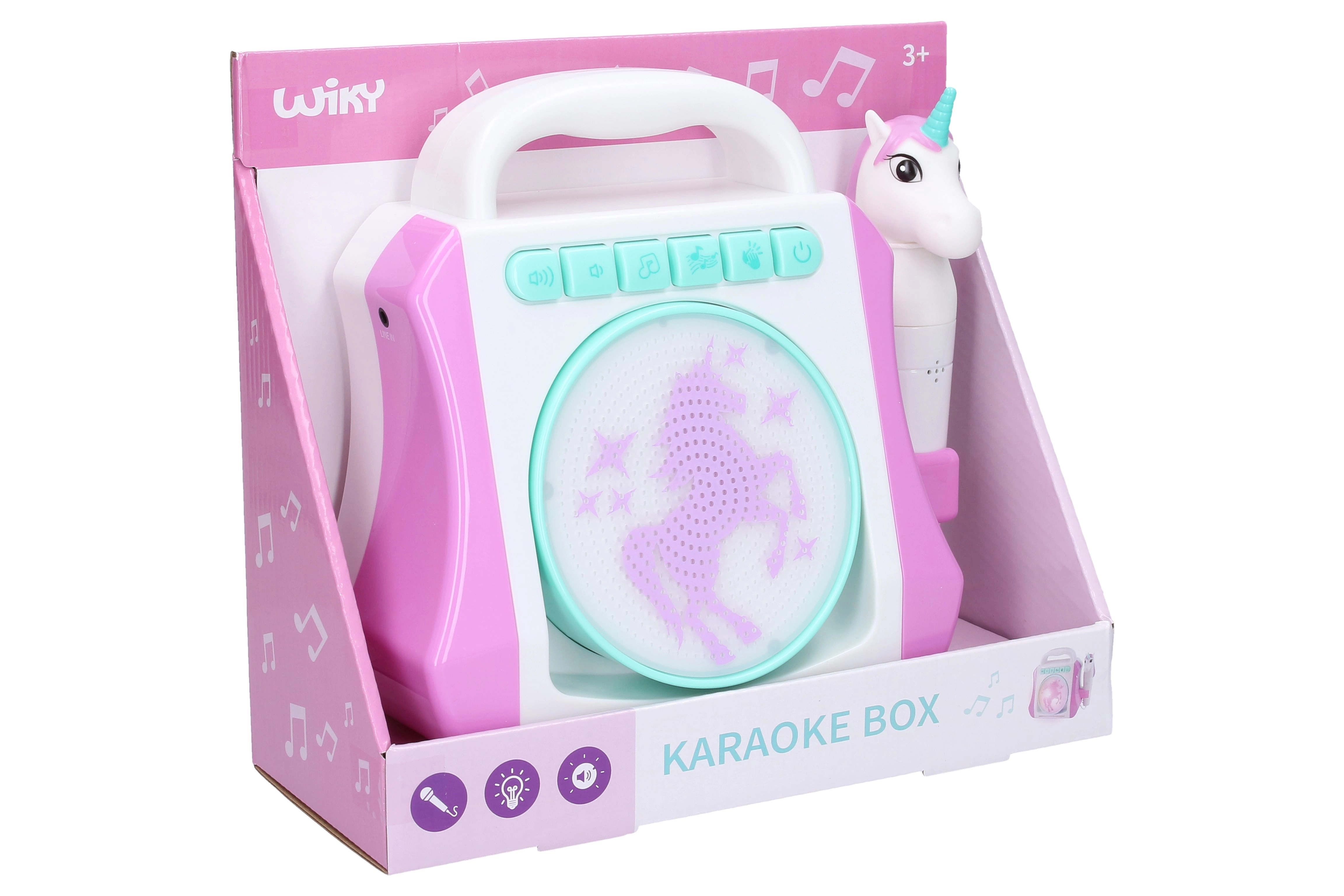 Pasinerkite į muzikos ir fantazijos pasaulį su vienaragio formos karaokės dėžute. Šis veikiantis mikrofonas leis jums dainuoti pagal net 16 ritmų ir 8 melodijas, o šviesos efektai sukurs tikrą šou atmosferą.