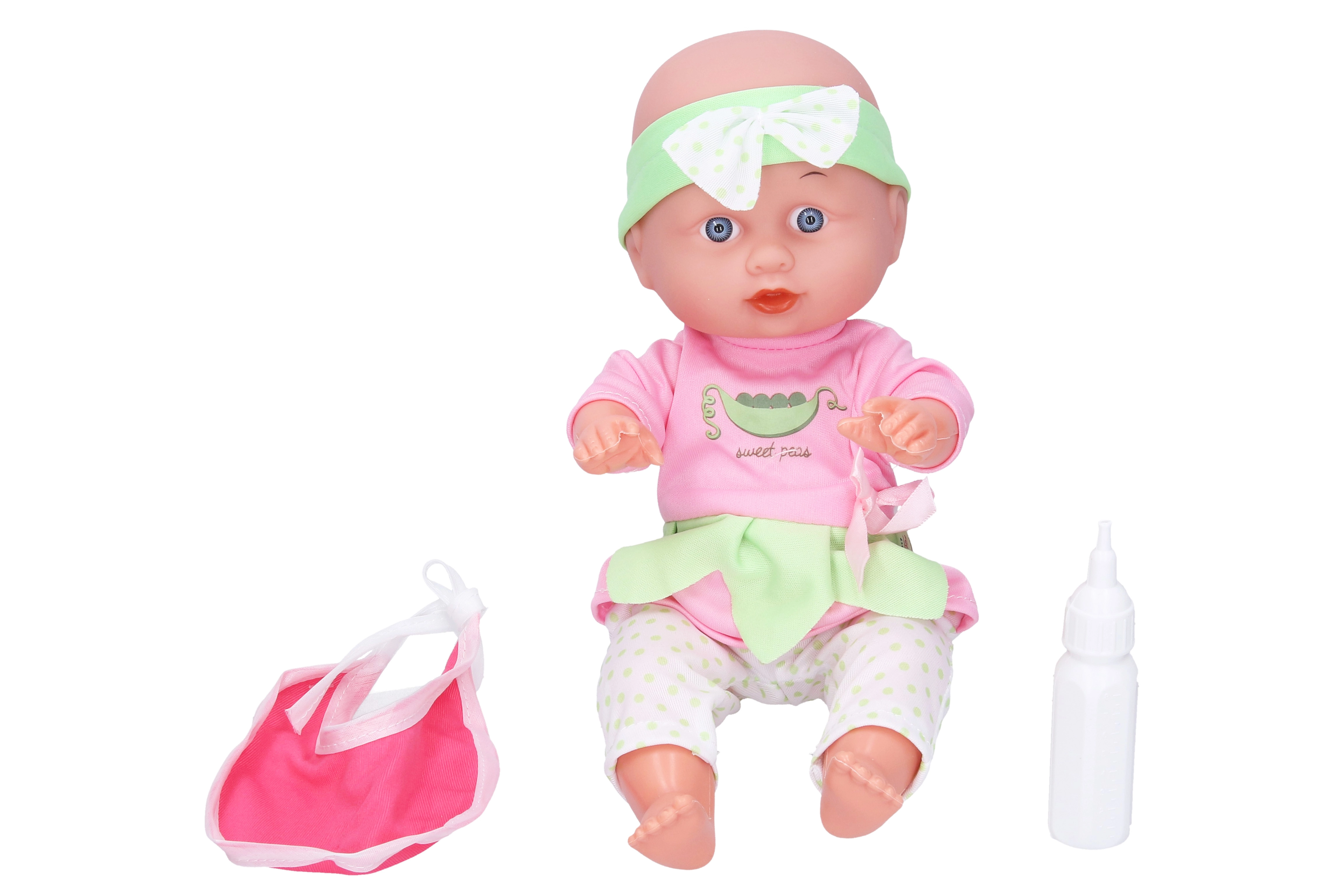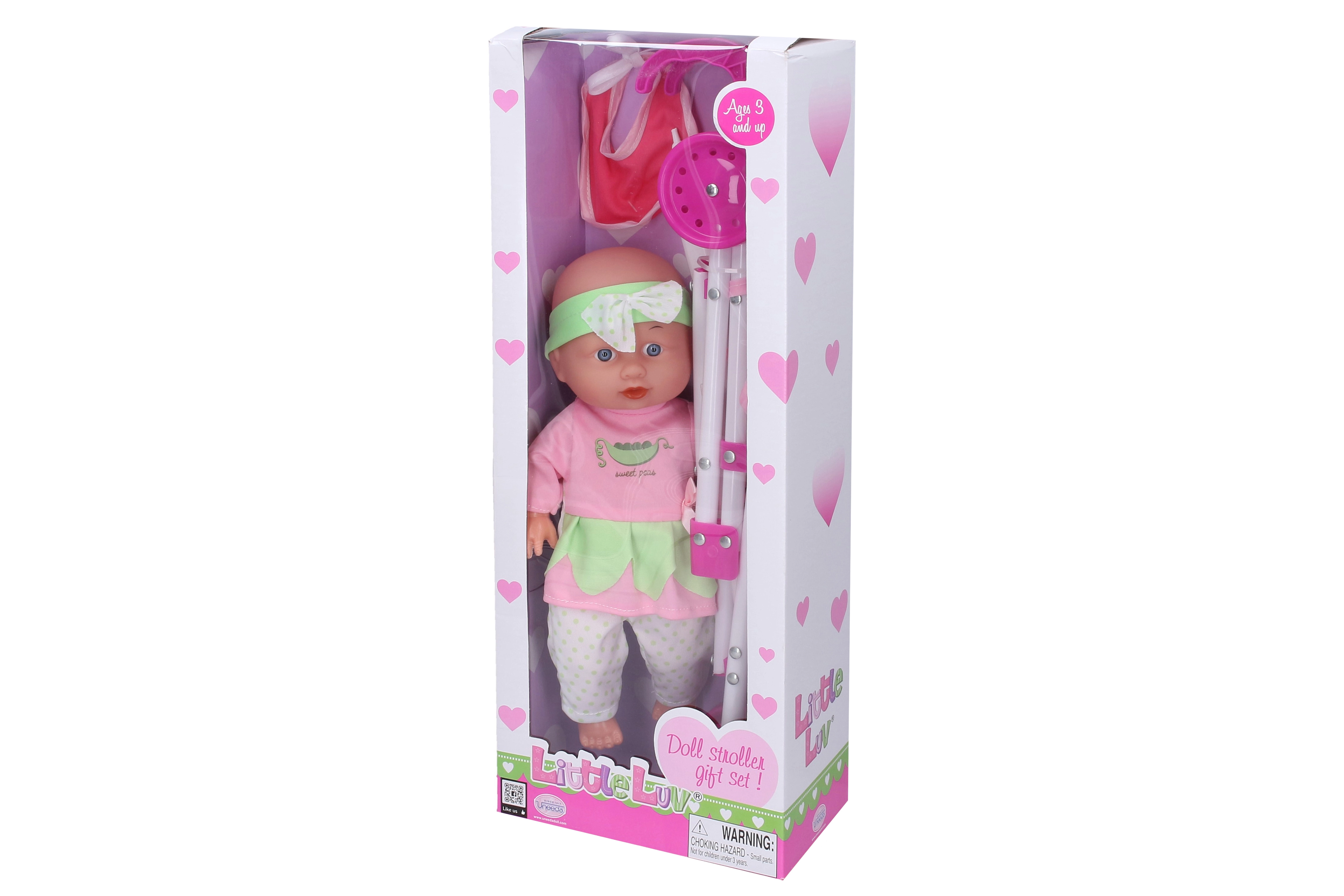 Miela lėlytė su vežimėliu, idealiai tinkama vaikų žaidimams ir fantazijos pasaulio atradimams. Rinkinyje yra suskleidžiamas vežimėlis, seilinukas ir buteliukas pilnavertiškam žaidimų įspūdžiui.