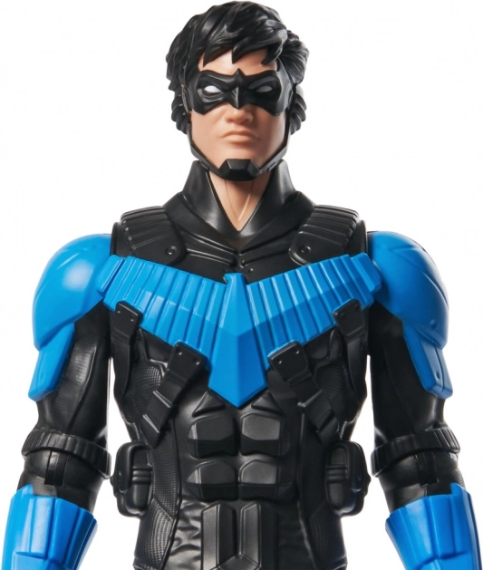 Nightwing figūrėlė kruopščiai pagaminta, akcentuojant detales, įskaitant būdingą juodą ir mėlyną kostiumą.