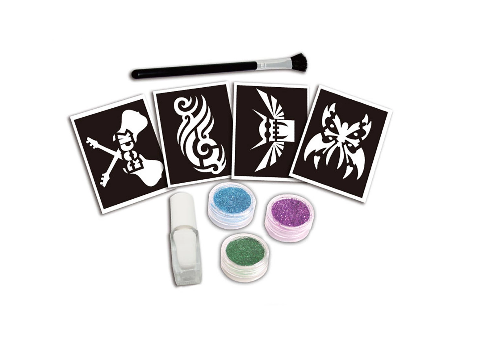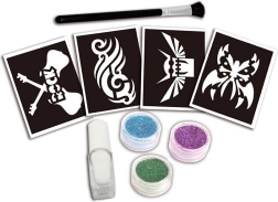 Rinkinys puikiai tinka gimtadieniams, vaikų vakarėliams ir kūrybai namuose. Vadovaudamiesi pridėtomis instrukcijomis per akimirką sukursite blizgančius piešinius ant odos, kurie trauks dėmesį.