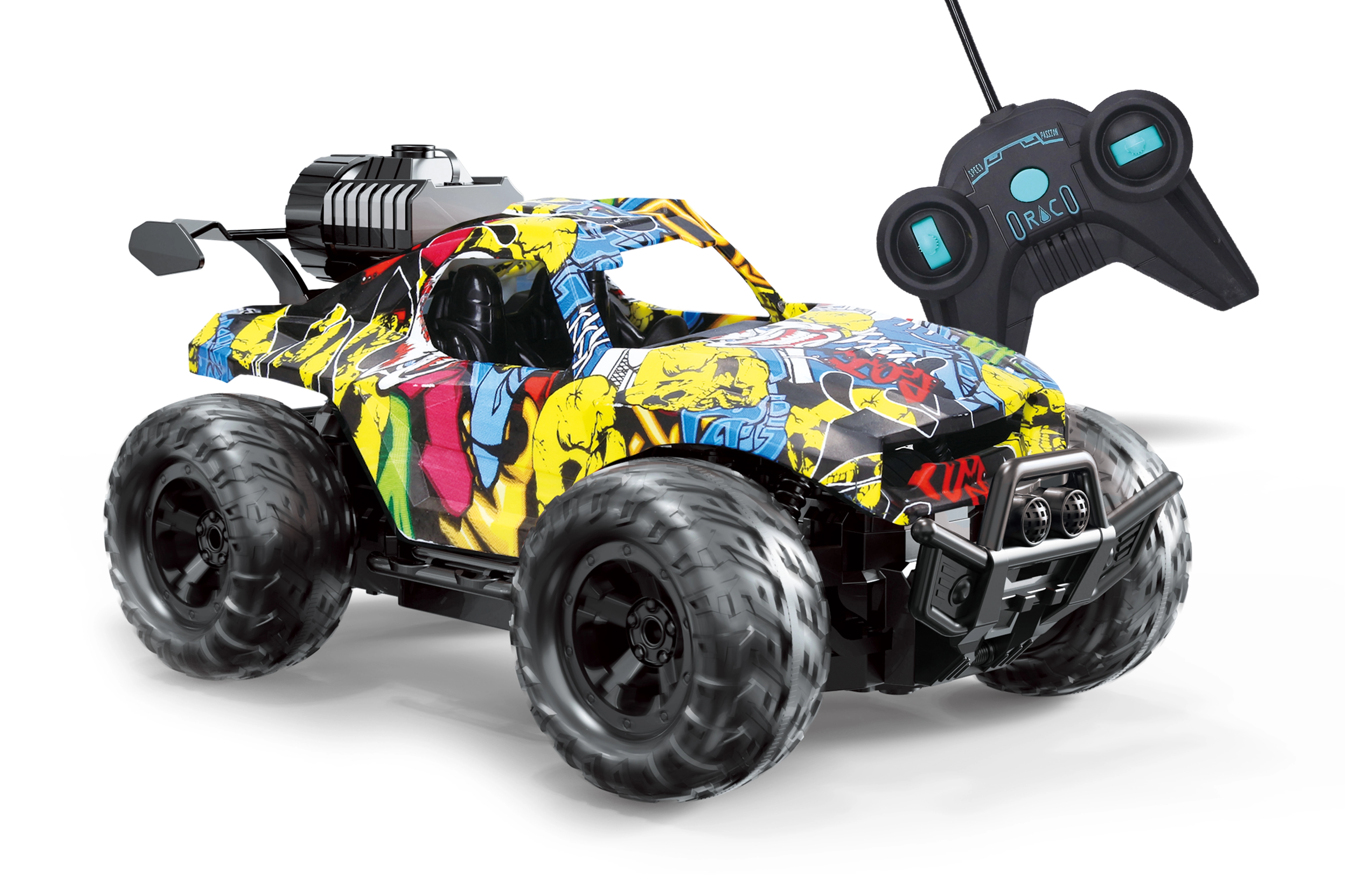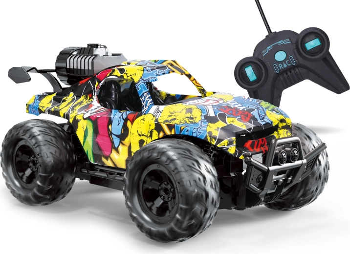 Šis visureigis RC automobilis su stilingu grafičiu dizainu suteikia daug pramogų dėl šviesos ir dūmų efektų derinio. Dūmai įjungiami mygtuku ant valdiklio ir atrodo realistiškai dėl lengvai papildomo vandens rezervuaro. Dėl matmenų 24 × 14,5 × 10,6 cm automobilį patogu valdyti, jis tinka tiek pradedantiesiems, tiek mažiesiems lenktynininkams.