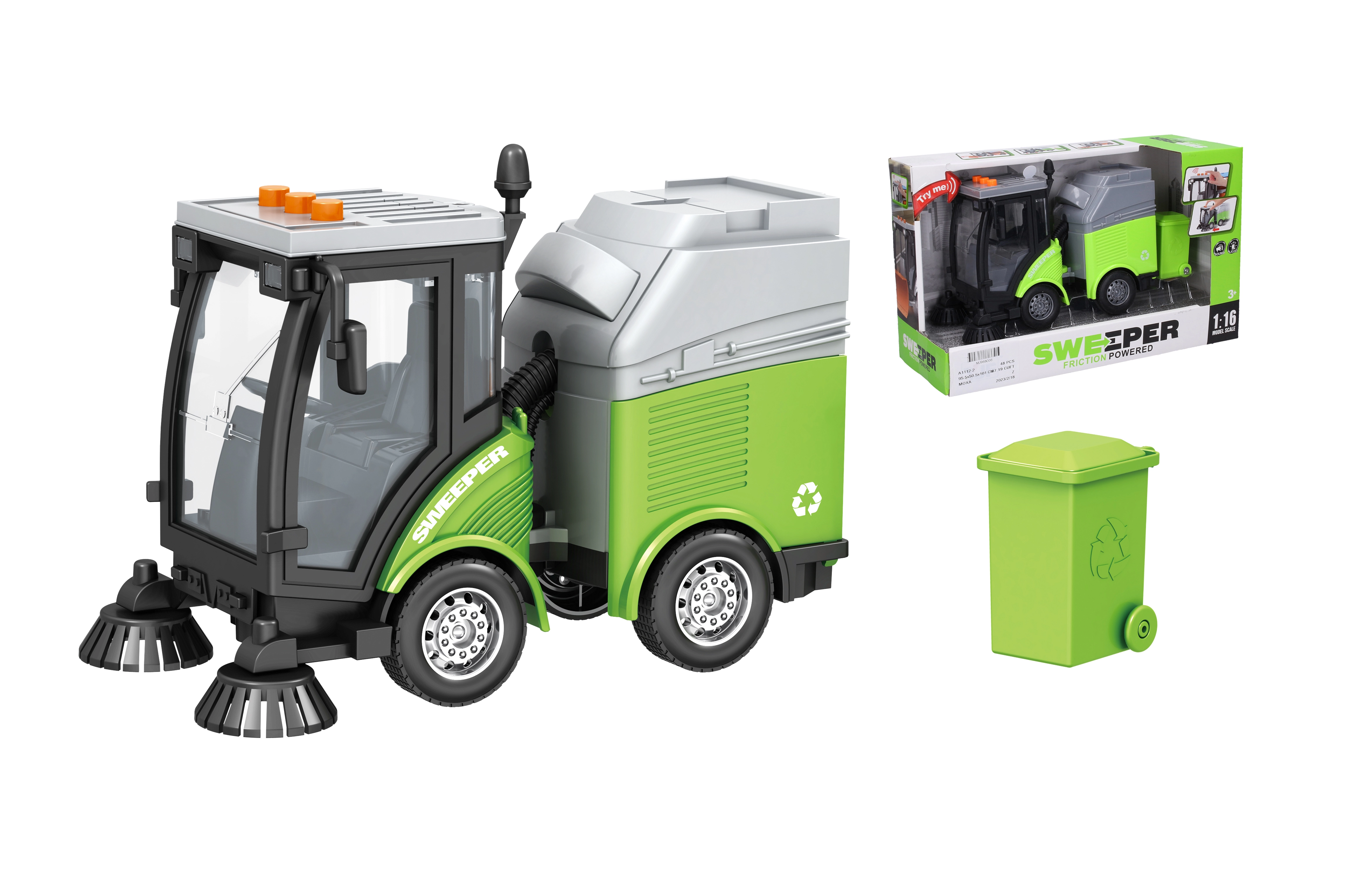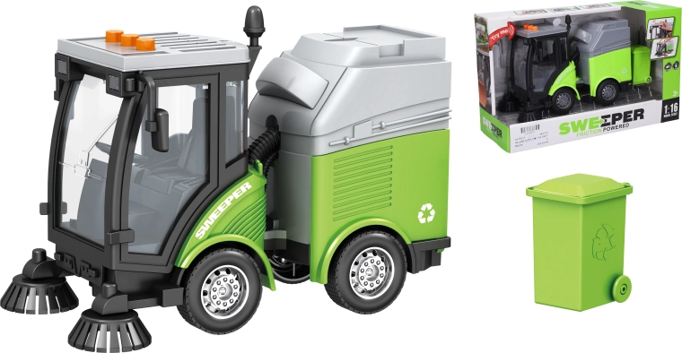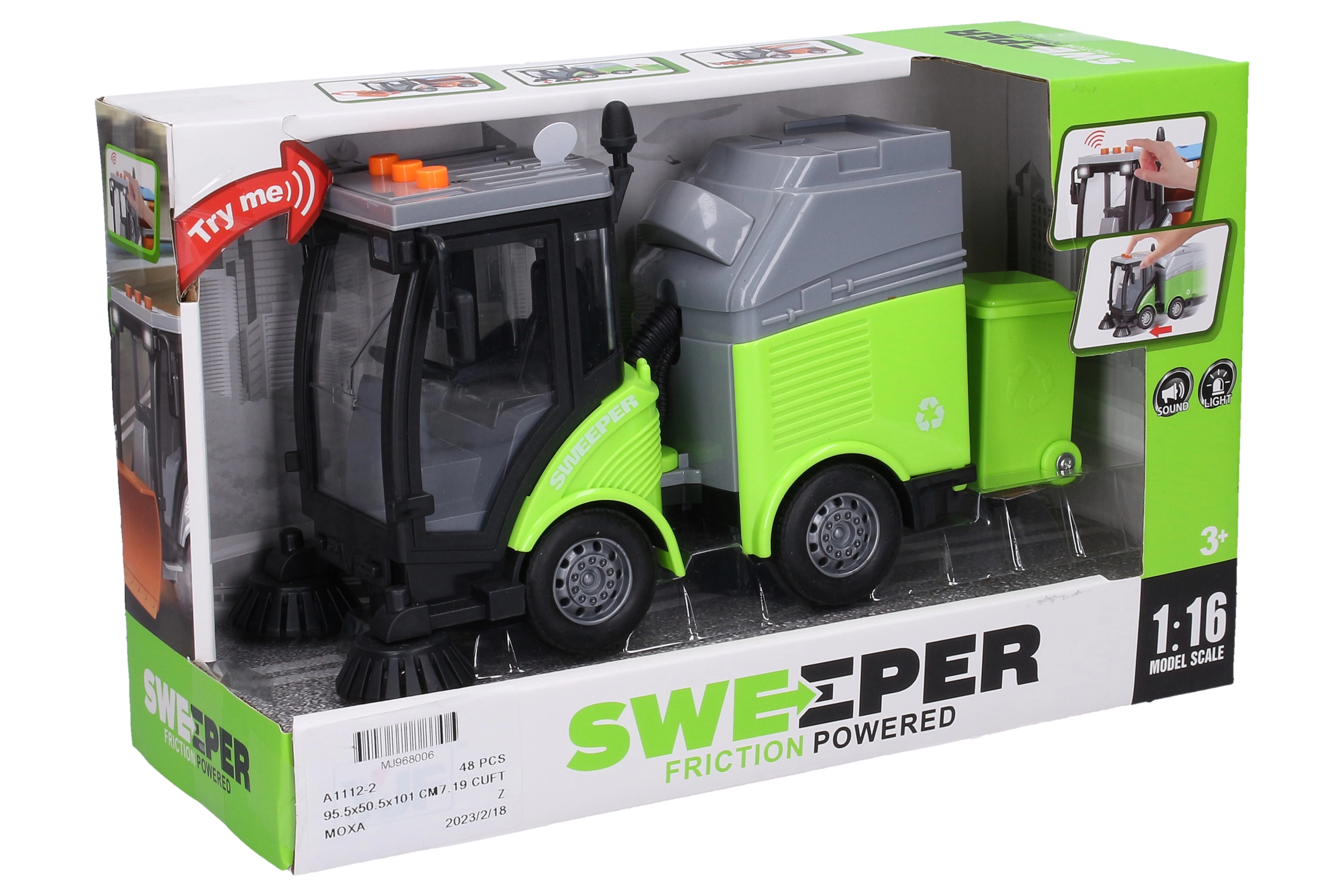 Mažieji vairuotojai pamils detaliai pagamintą šlavimo automobilį su šiukšliadėže, kuris suteikia tikrovišką miesto eismo patirtį. Dėl inercinio mechanizmo pakanka automobiliuką pastumti, ir jis pats greitai nurieda į priekį. Mygtukai ant kabinos įjungia efektus, kurie ištikimai atkuria tikrą transporto priemonę: variklio startą, garsinį signalą ir atbulinės eigos garsą su šviesomis.