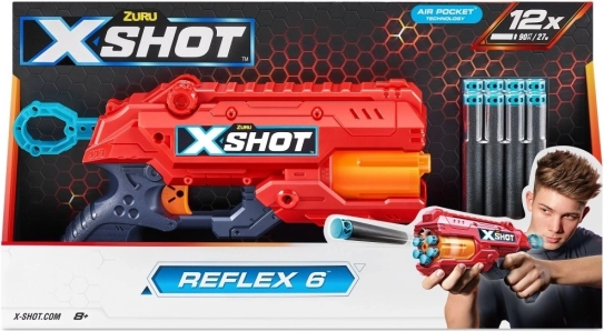 Lengvas, patikimas ir pasiruošęs veiksmui – tai X-SHOT Reflex 6. Besisukantis 6 strėlyčių būgnas leidžia šaudyti greitai, be nereikalingų pauzių, o ergonomiška rankena užtikrina patogų laikymą net ilgesnių dvikovų metu. Idealu namų mūšiams, kiemo susišaudymams ir varžybinėms pramogoms su draugais.