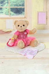 Meškiukas vilki stilingus baltus drabužius, kuriuos lengva derinti su kitais BABY Born kolekcijos gaminiais.
